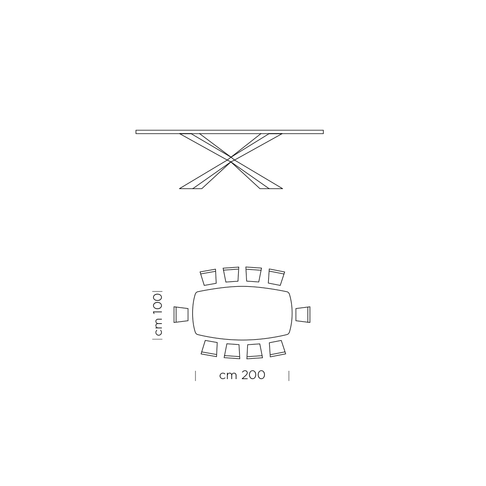 - L 200 x P 100 x Al 75,3 cm (10 asientos);
