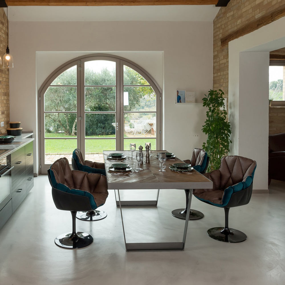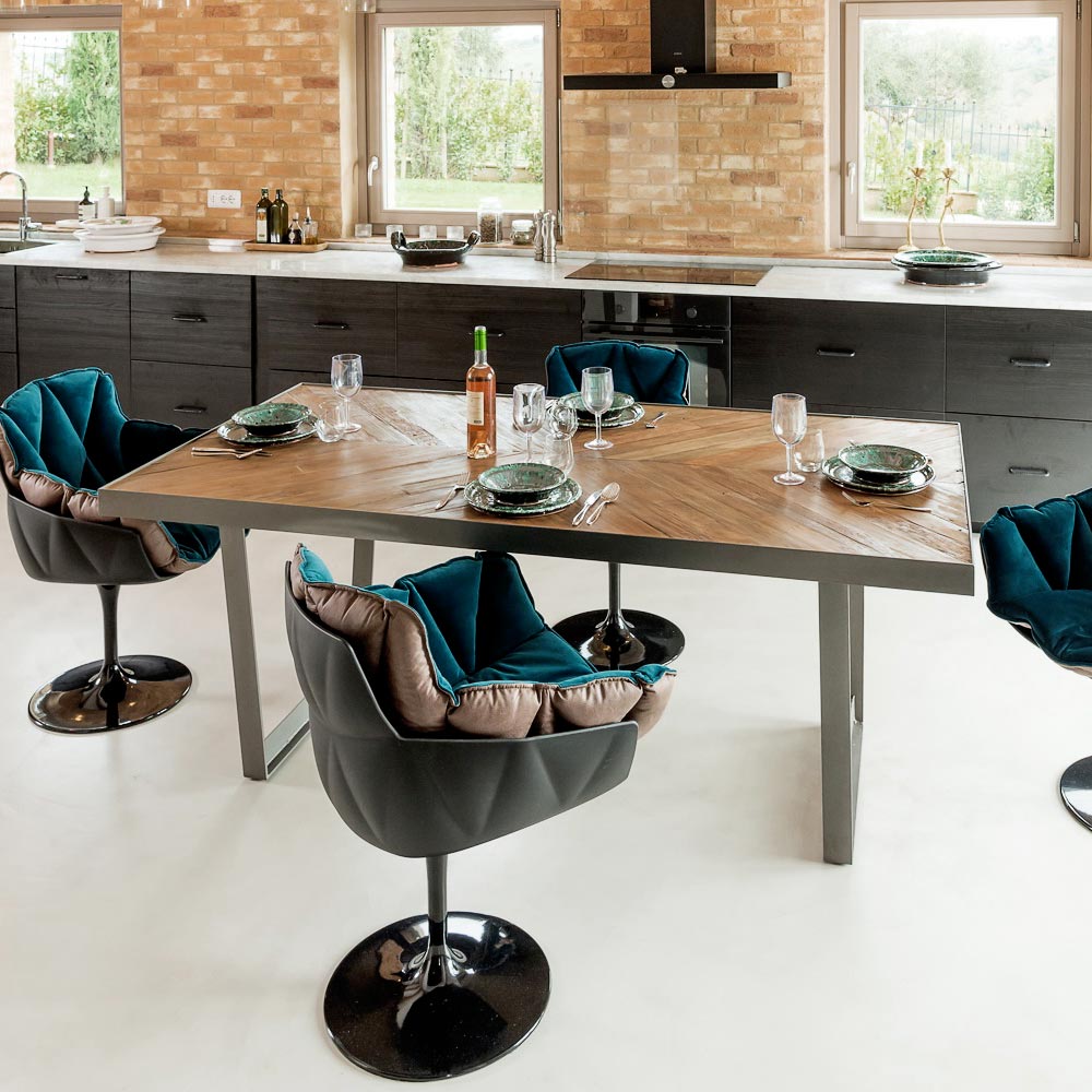 Este conjunto de decoración es literalmente único, precisamente porque encarna la peculiar historia de la materia vivida. La elaboración se realiza en su mayor parte según procedimientos artesanales . Cada rasguño y imperfección, cada cicatriz en la madera, da testimonio de la originalidad de un pasado que cobra nueva vida. La madera tropical reciclada legalmente de artefactos antiguos, barcos y edificios abandonados es tratada y cepillada por expertos para recuperar su dignidad y brillo. Este producto combina la esencia del gusto rústico con las formas del diseño contemporáneo y con algunos detalles del estilo industrial .