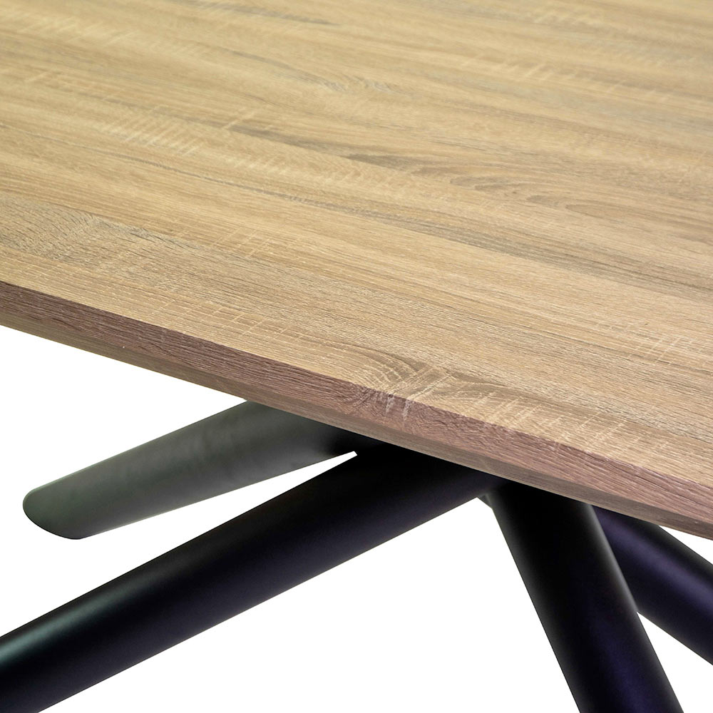 La tapa de MDF con acabado efecto madera natural añade calidez y carácter al mueble, creando un armonioso contraste visual con el metal oscuro. La superficie lisa y amplia ofrece el espacio ideal para acoger a familia e invitados , adaptándose perfectamente a cualquier ambiente, desde el comedor hasta el salón moderno , pasando por contextos contract como restaurantes u oficinas.