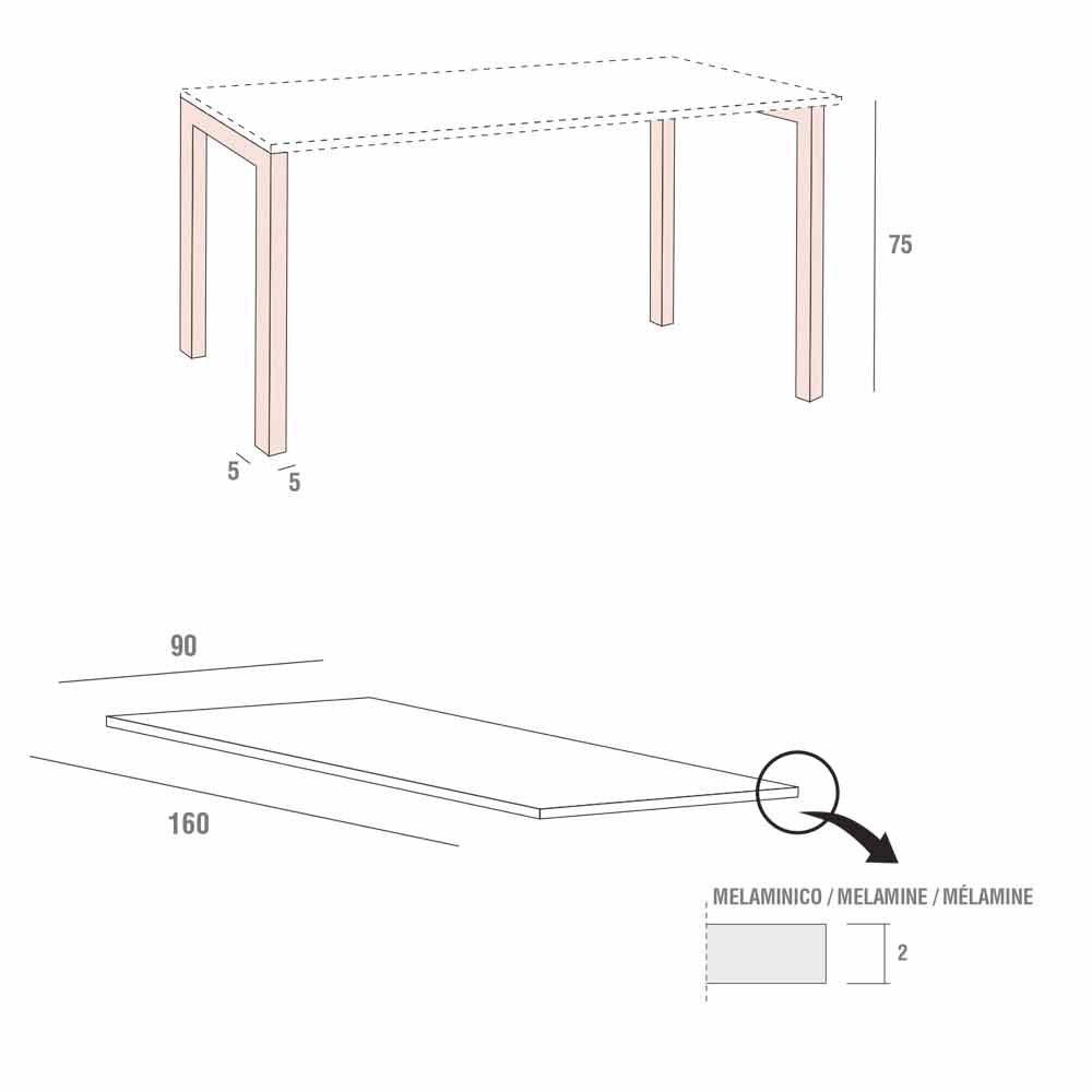 Mesa de cocina realizada con tapa de melamina equipada con cantos de ABS pegados sobre poliuretano reactivo y patas de metal lacado con polvo epoxi en acabado blanco RAL 9016. Un complemento de decoración diseñado y concebido para quienes aman enriquecer sus espacios de una manera sobria y funcional sin descuidar la calidad y el diseño. Su estética se caracteriza por líneas y formas esenciales que la convierten en una mesa especialmente versátil , capaz de caracterizar cualquier cocina o comedor con un estilo contemporáneo y con personalidad. Para subrayar su elegancia están los maravillosos acabados ofrecidos que completan el producto gracias a las espléndidas vetas de la madera. La melamina es un material que surge del prensado de finas láminas decorativas sobre un panel soporte, permitiendo así obtener un resultado resistente a productos químicos, abrasiones y rayones y al mismo tiempo un sorprendente realismo de los acabados .