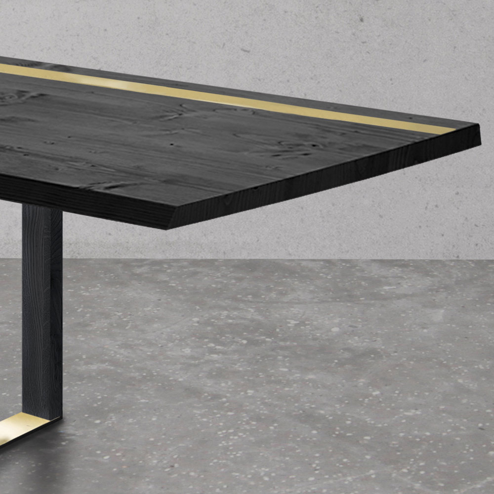 Mesa en roble anudado y tapa y base enriquecidas con piezas de metal Made in Italy.