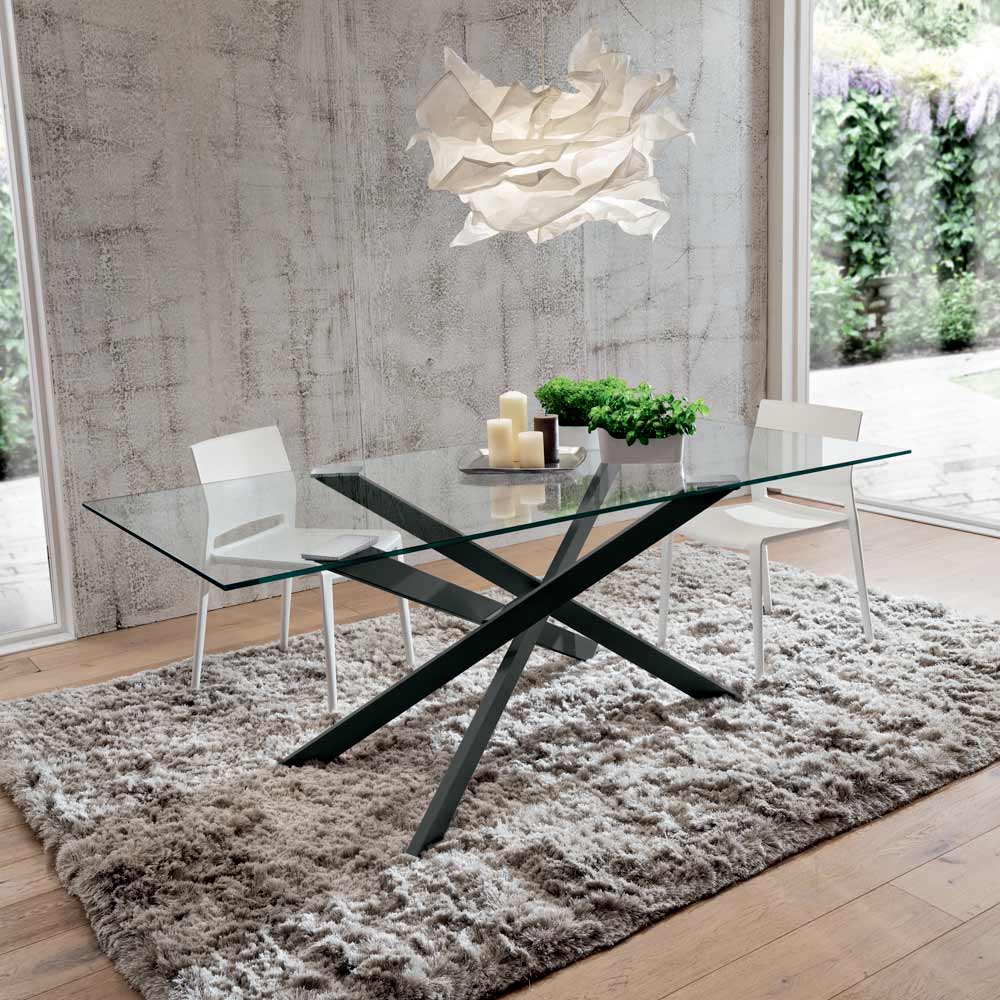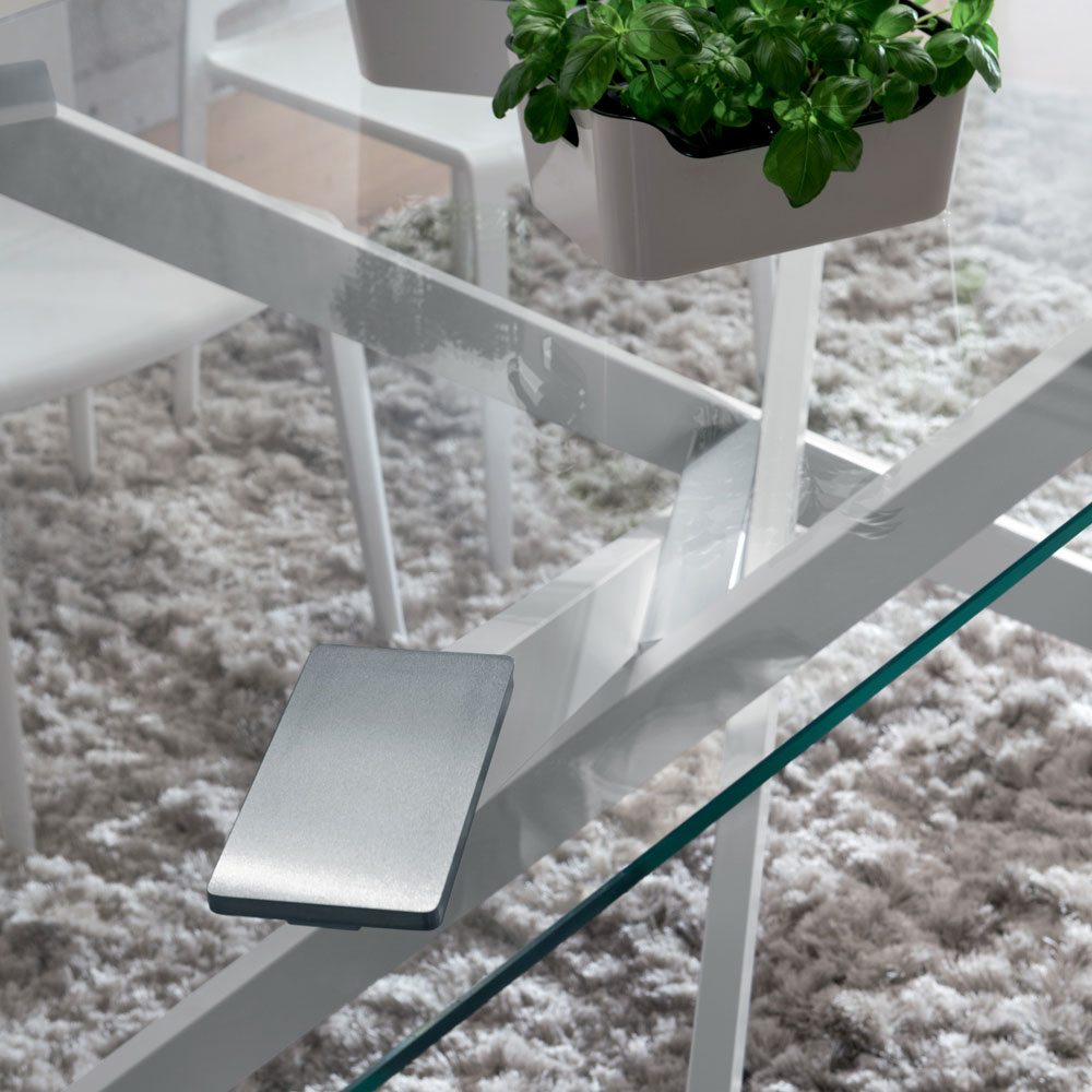 Mesa de comedor con tapa de cristal transparente hecha en Italia, lujo.