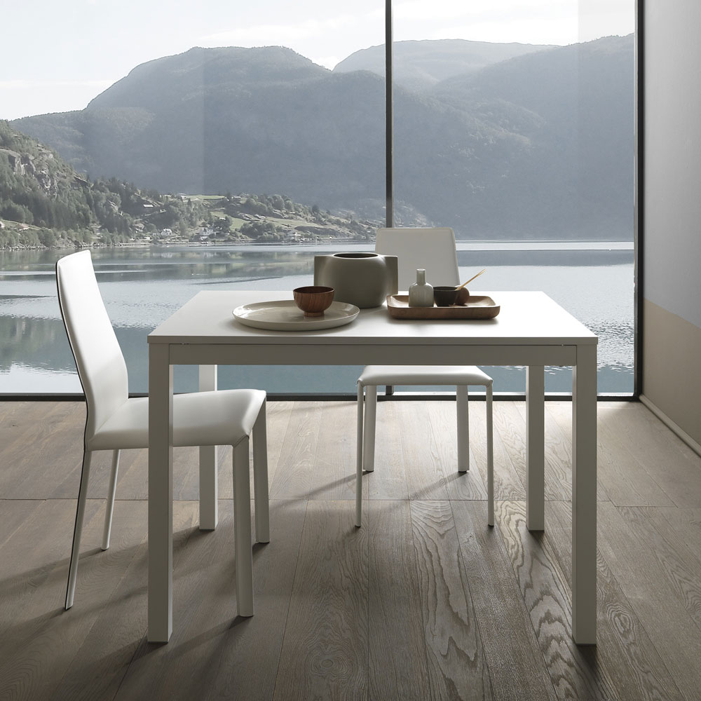 Mesa de comedor extensible de metal hasta 190 cms con tapa de melamina Made in Italy