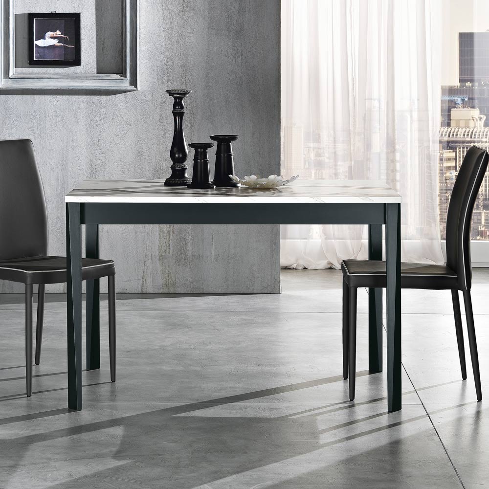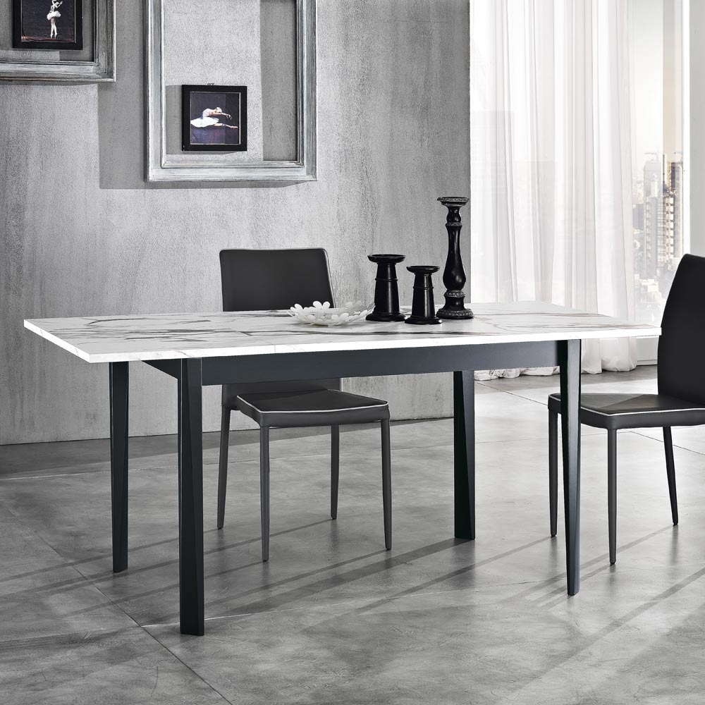 Mesa de comedor extensible en melamina y madera maciza Made in Italy.