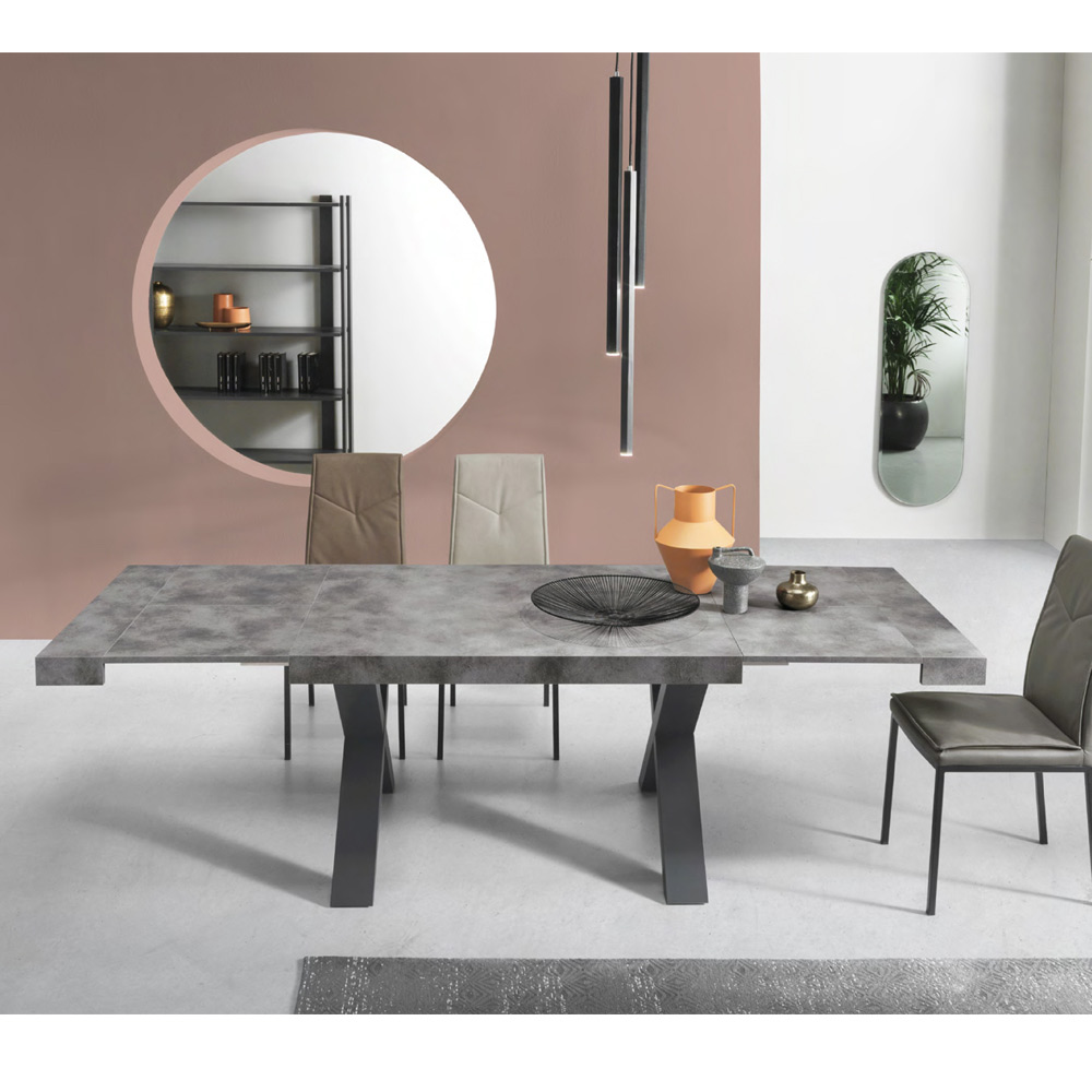 Mesa de comedor extensible en laminado efecto cemento Made in Italy.