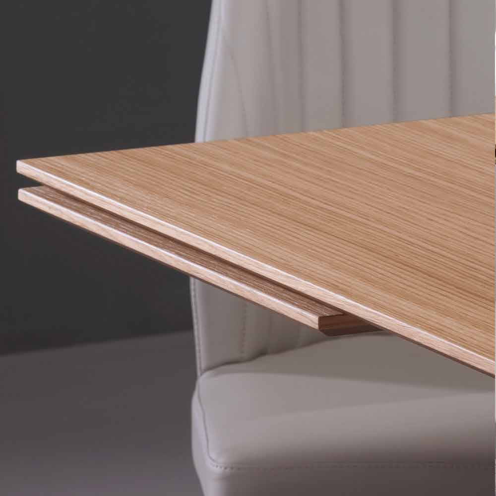 La tapa y las extensiones de Daryl están chapadas en roble natural; la tapa también presenta un borde acampanado de 45°.