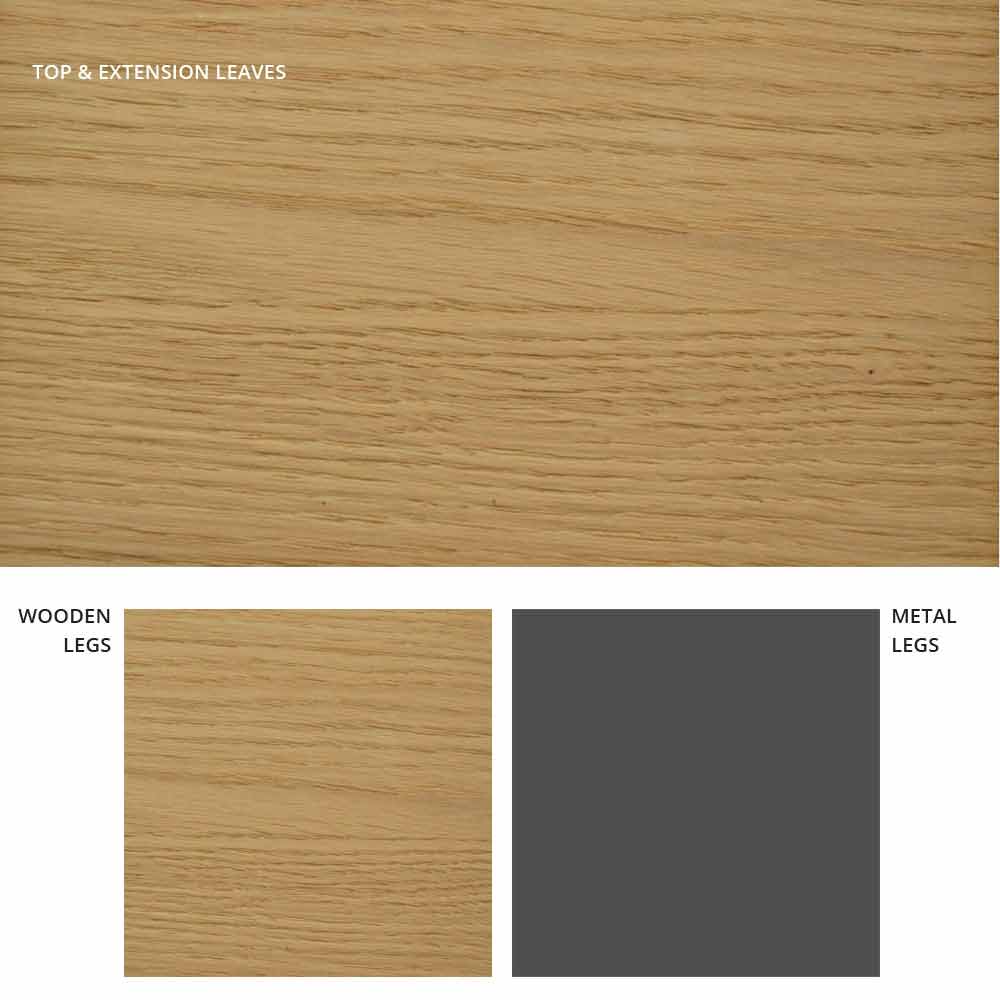 Esta mesa tiene un diseño distintivo, con una estructura metálica lacada en antracita y dos patas centrales de roble natural.