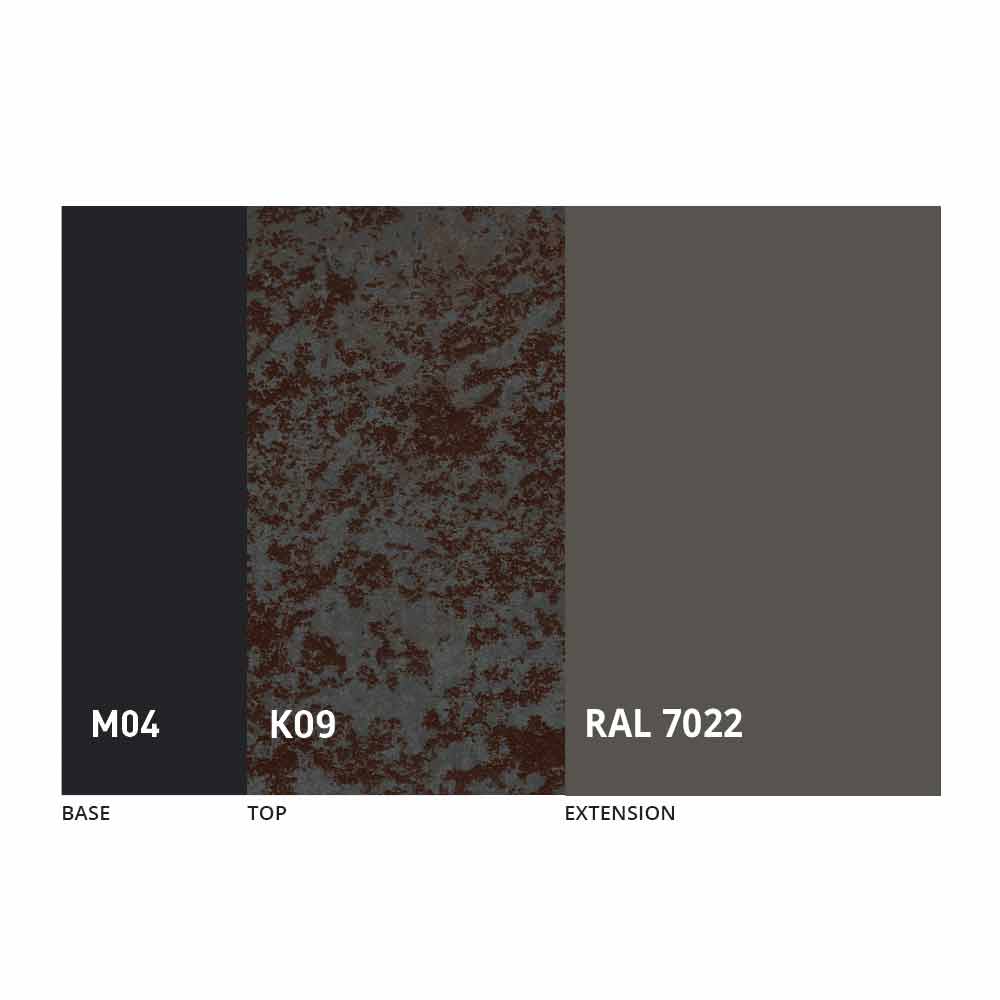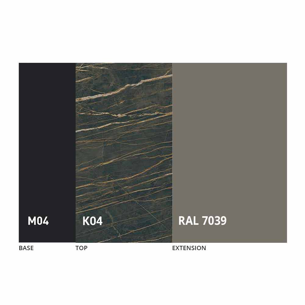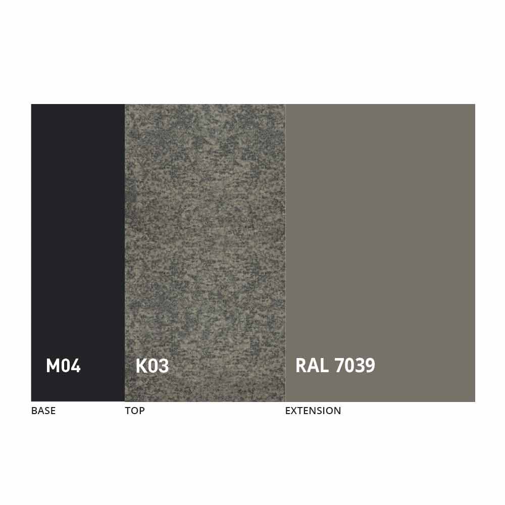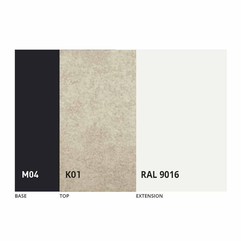 El sobre y la base de la mesa se pueden personalizar con diferentes materiales y acabados de muestra o lacado RAL. Para obtener información, póngase en contacto con nosotros mediante el formulario "