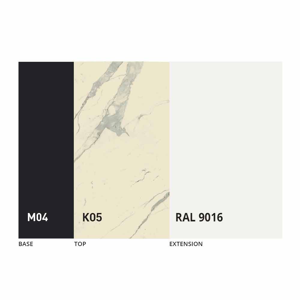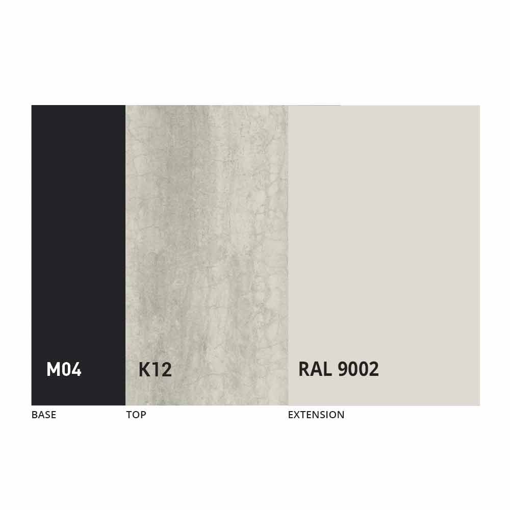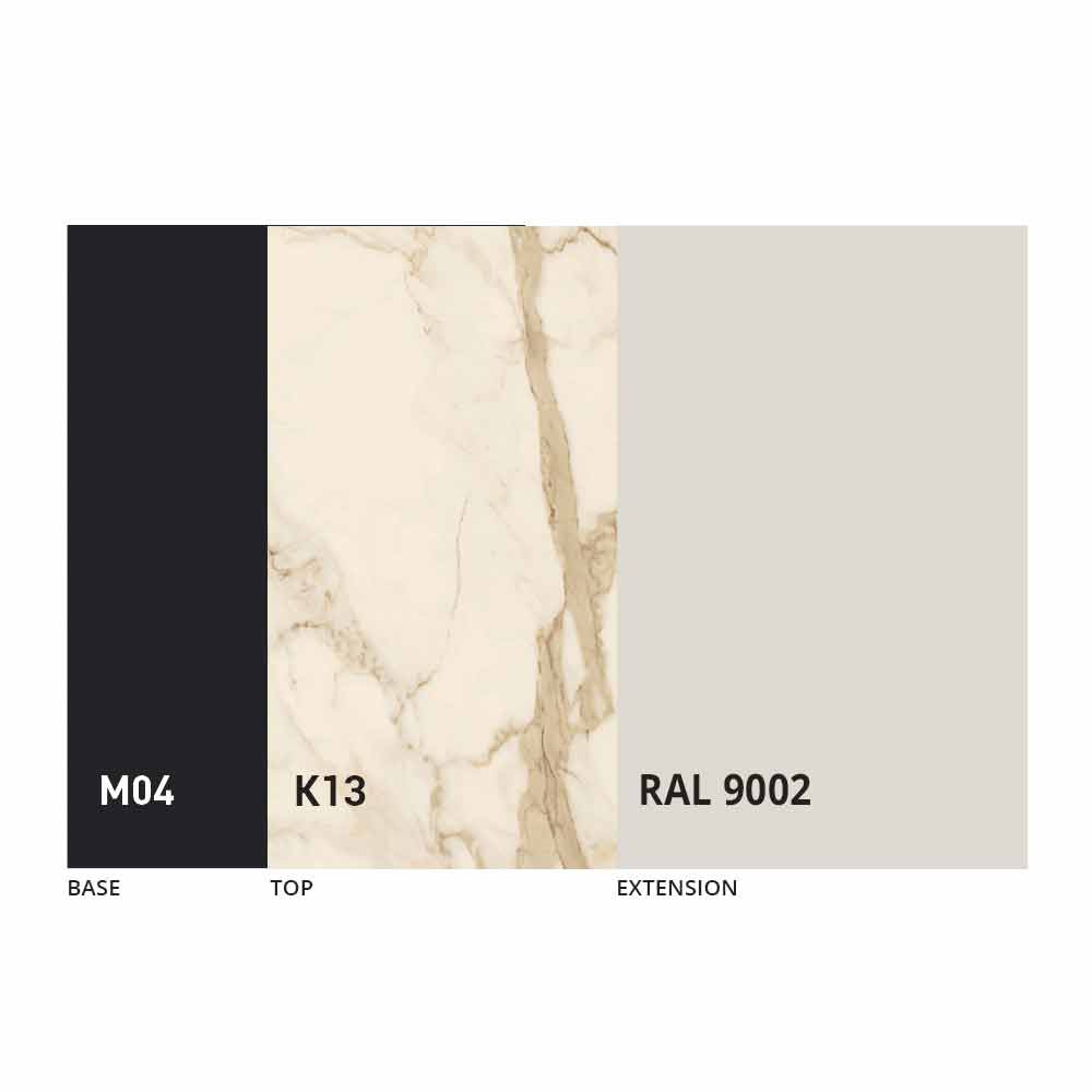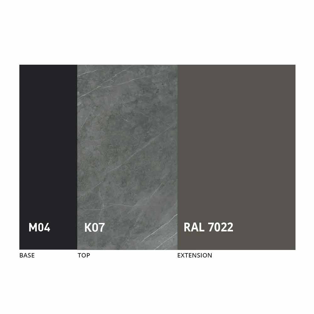 El sobre y la base de la mesa se pueden personalizar con diferentes materiales y acabados de muestra o lacado RAL. Para obtener información, póngase en contacto con nosotros mediante el formulario "