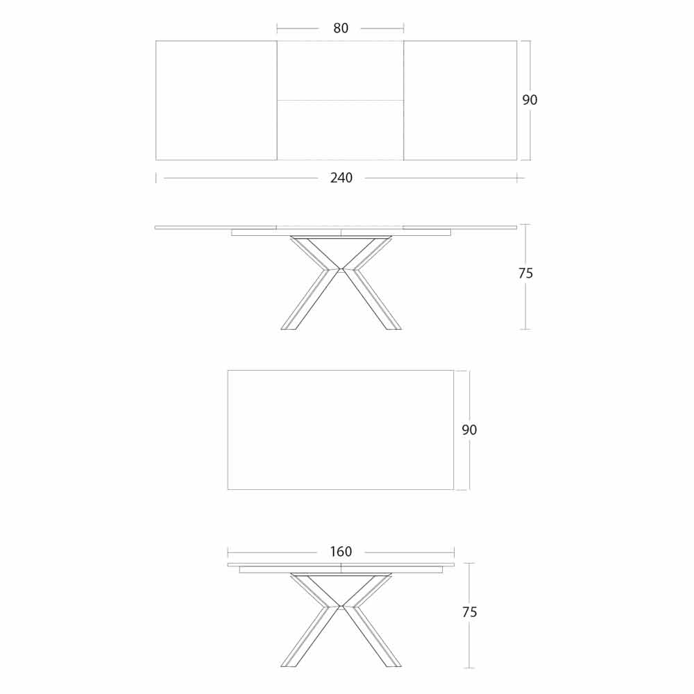- L 160-240 x P 90 x H 75 cm