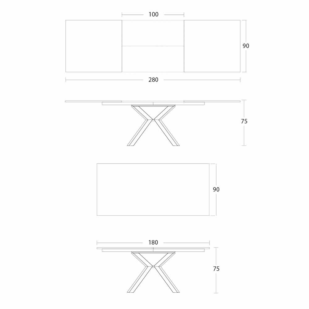 - Ancho 180-280 x Ancho 90 x Alto 75 cm