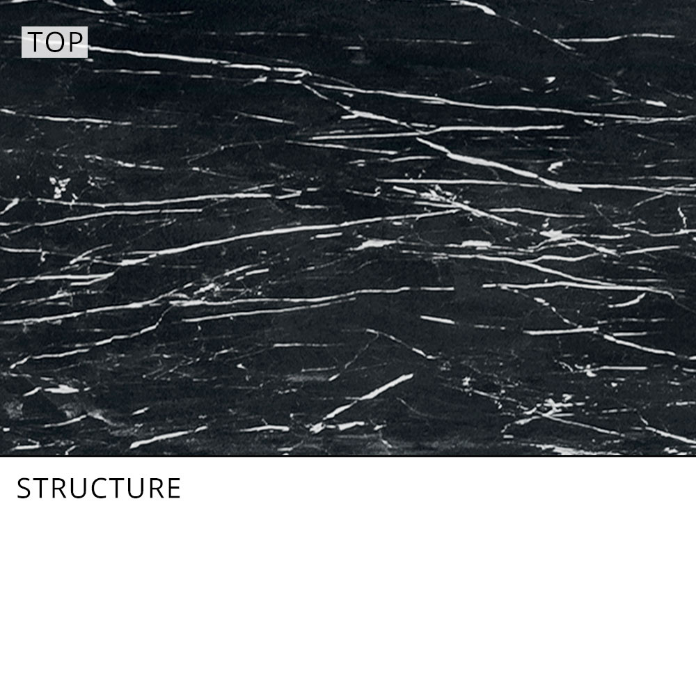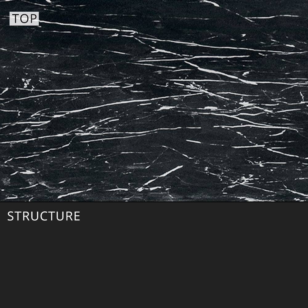 • Encimera de gres efecto mármol negro y aluminio gris arena metalizado