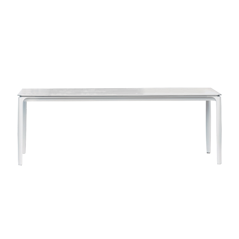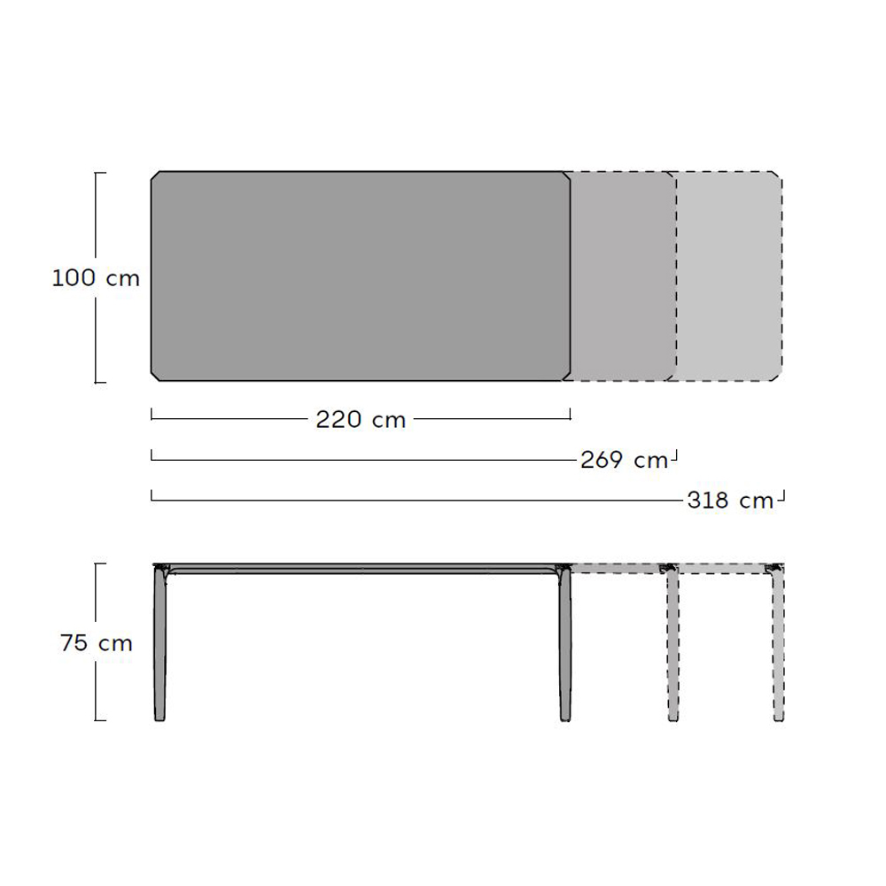 Mesa de comedor extensible a 318 cm de diseño exterior en aluminio y tapa de gres en varios acabados, made in Italy.