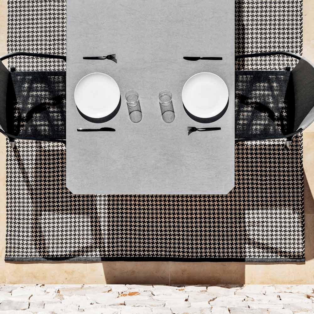 Es el detalle de la pata de aluminio fundido lo que le da a esta mesa de comedor de jardín el diseño refinado que la distingue y la personaliza en su compostura formal.