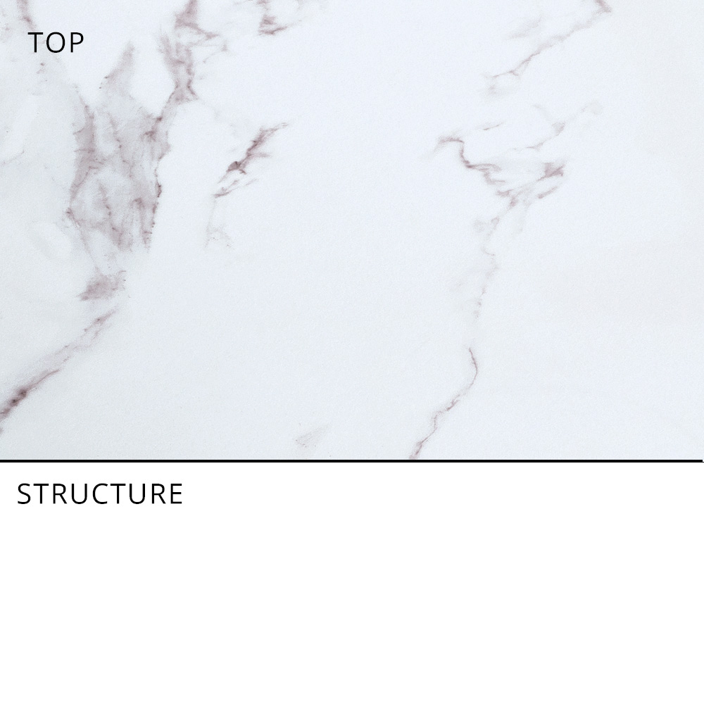 • Encimera de gres efecto mármol blanco y aluminio gris arena metalizado