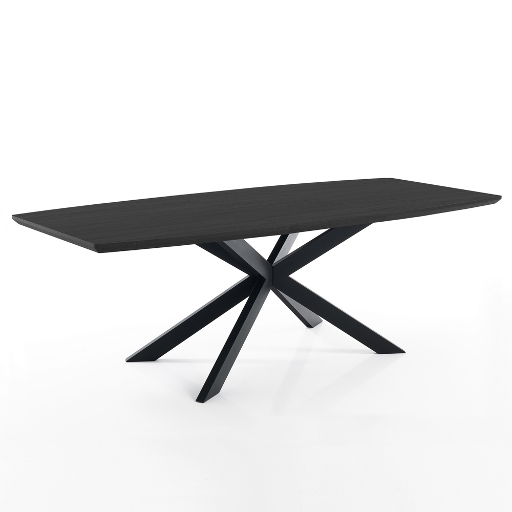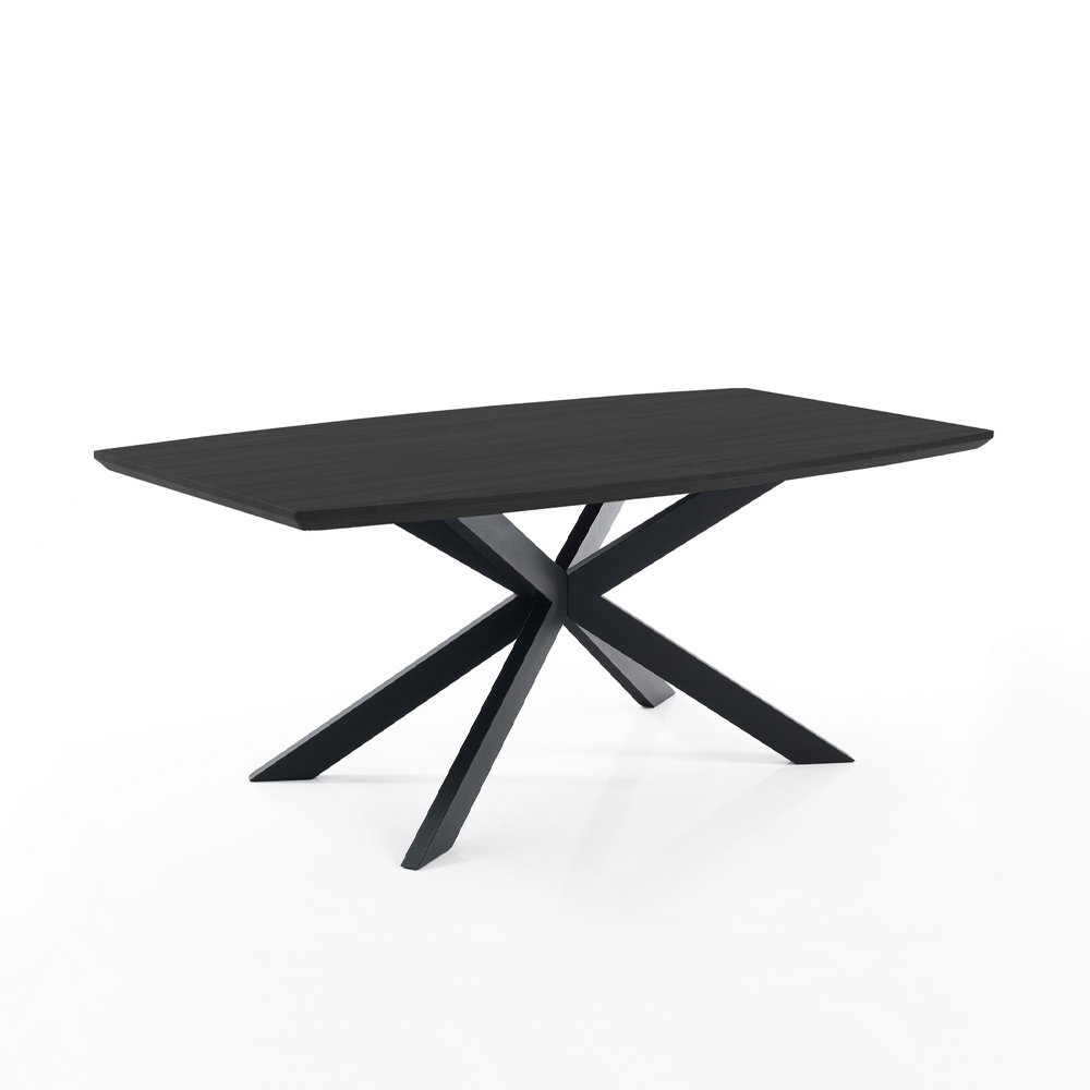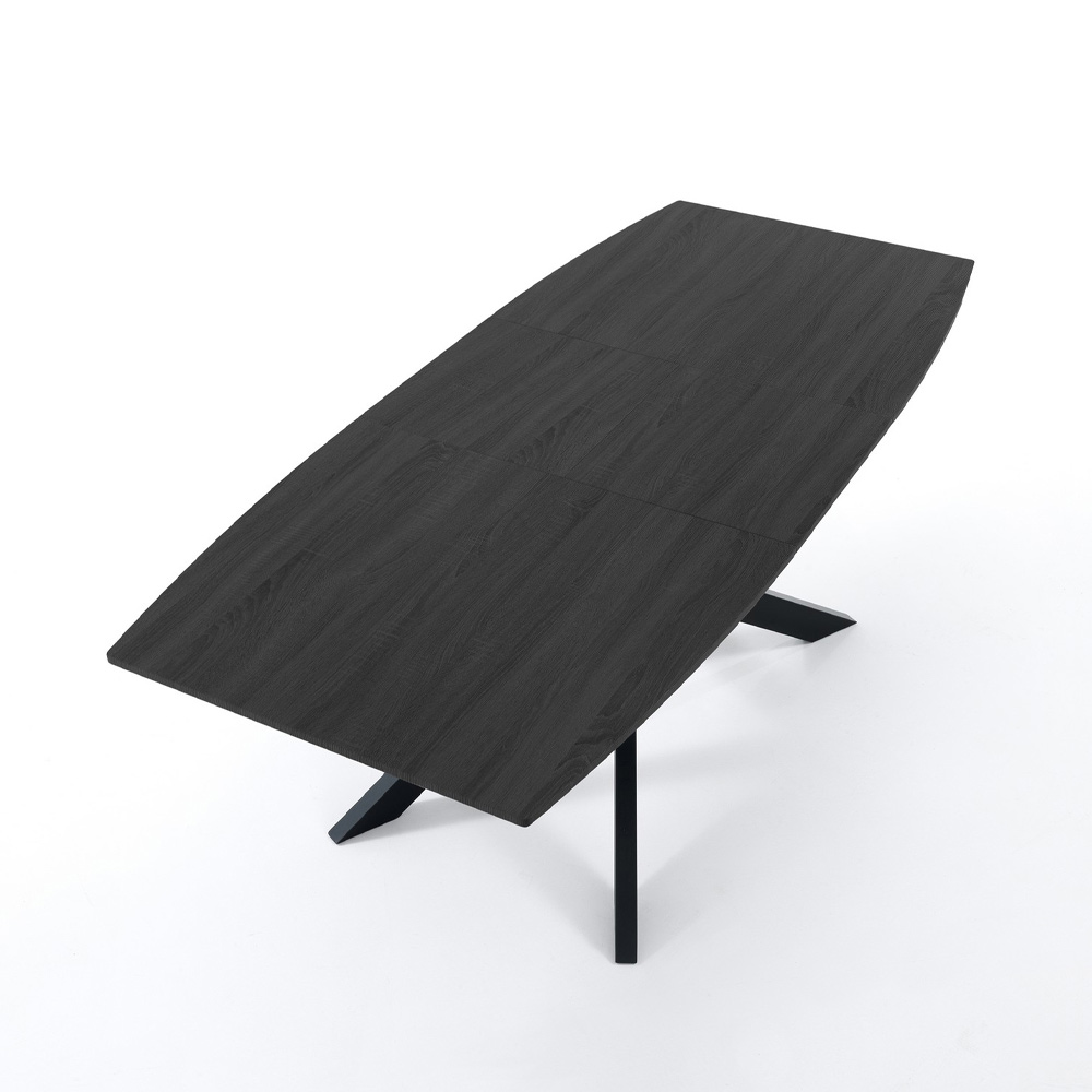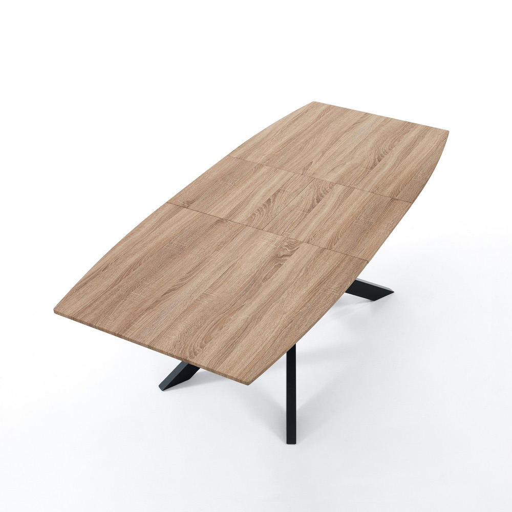 - Tapa con acabado de roble, base de metal pintado de negro mate.