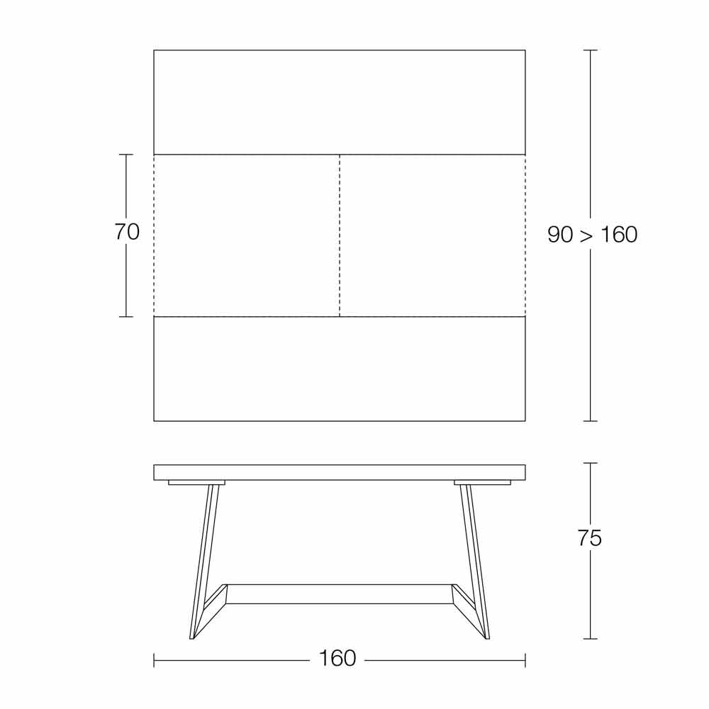 • Ancho 160 x profundidad 90 (160) x altura 75 cm