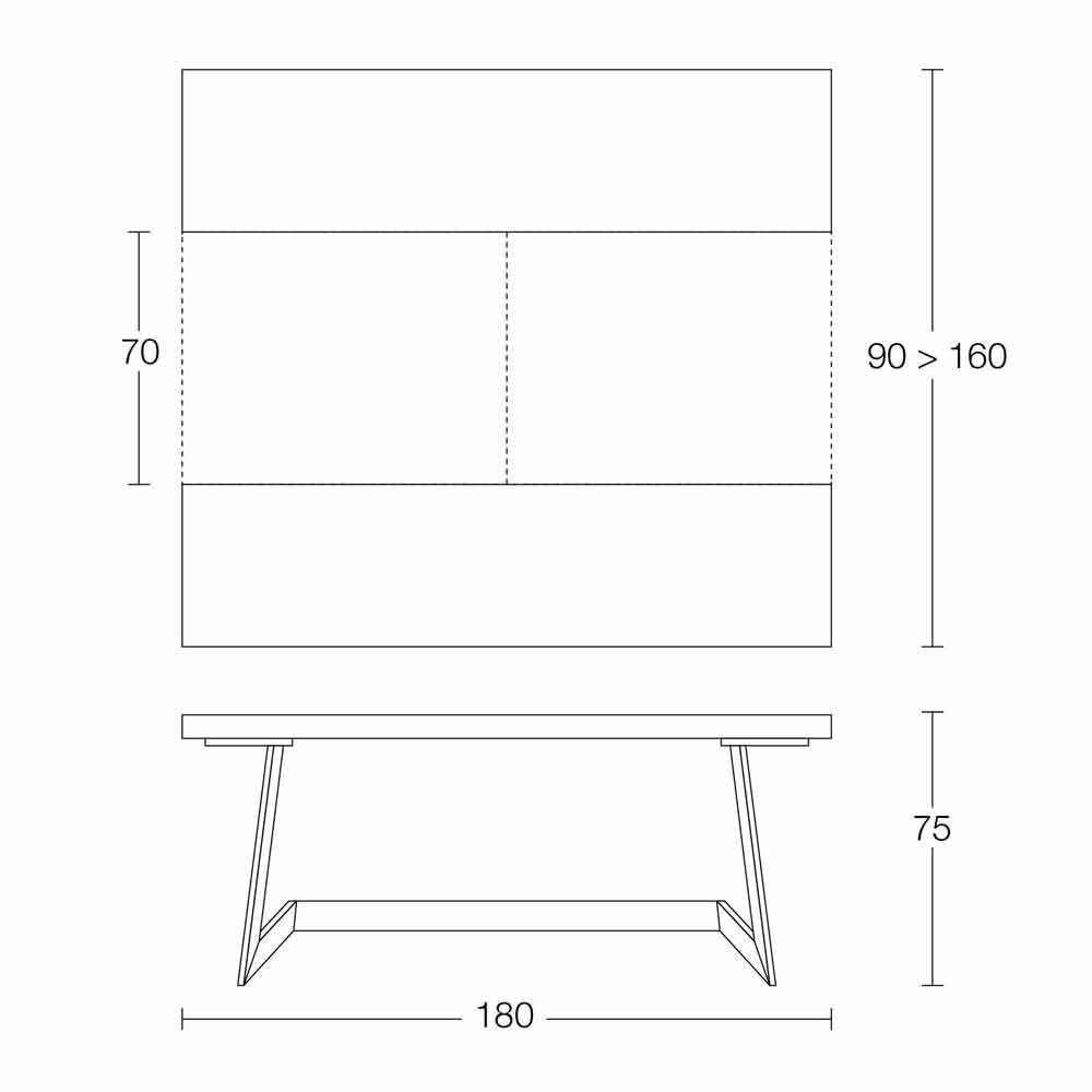 • Ancho 180 x profundidad 90 (160) x altura 75 cm