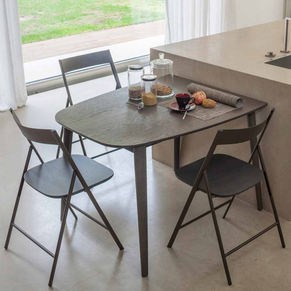 Mesa de comedor extensible y moldurada en madera contrachapada made in Italy.