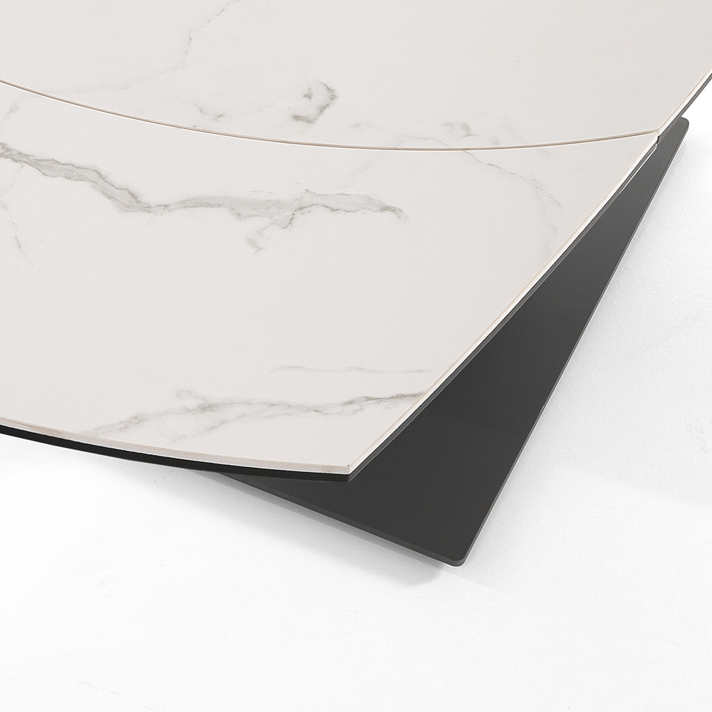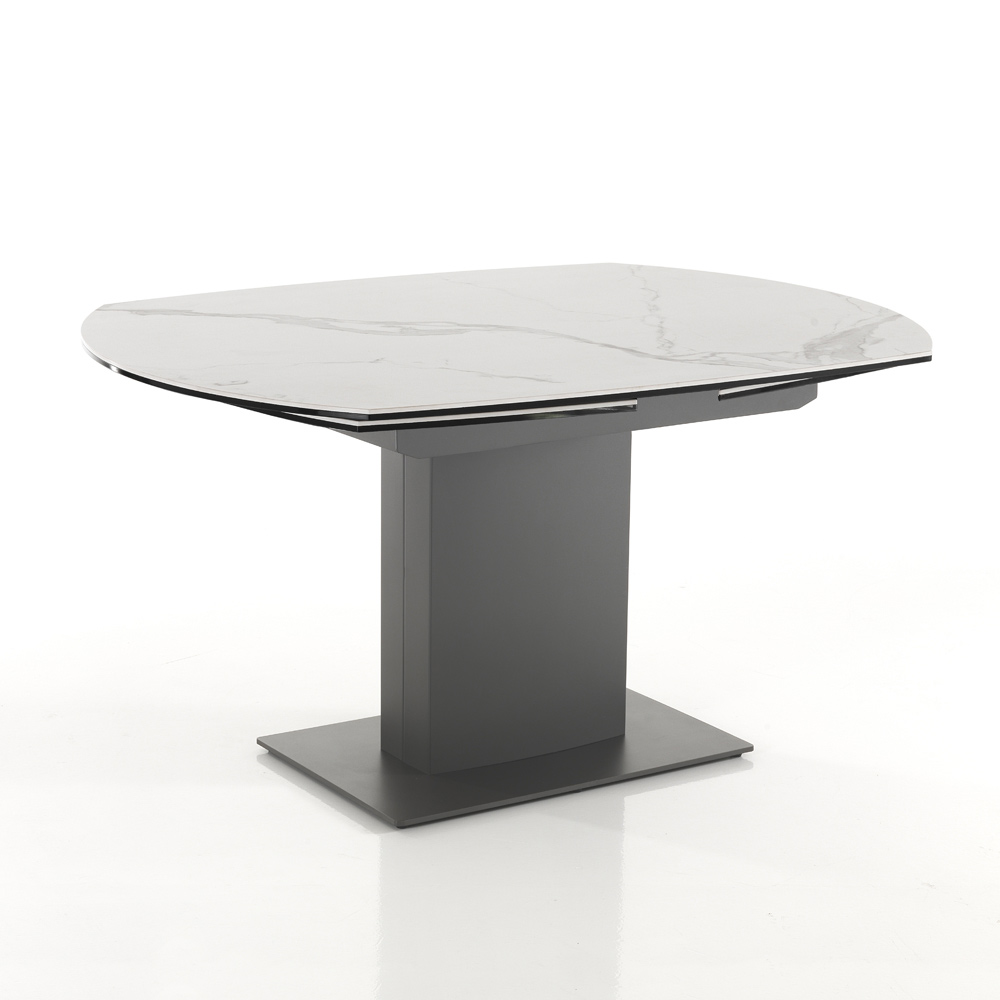 Mesa de comedor con tapa extensible en cerámica efecto mármol mate.