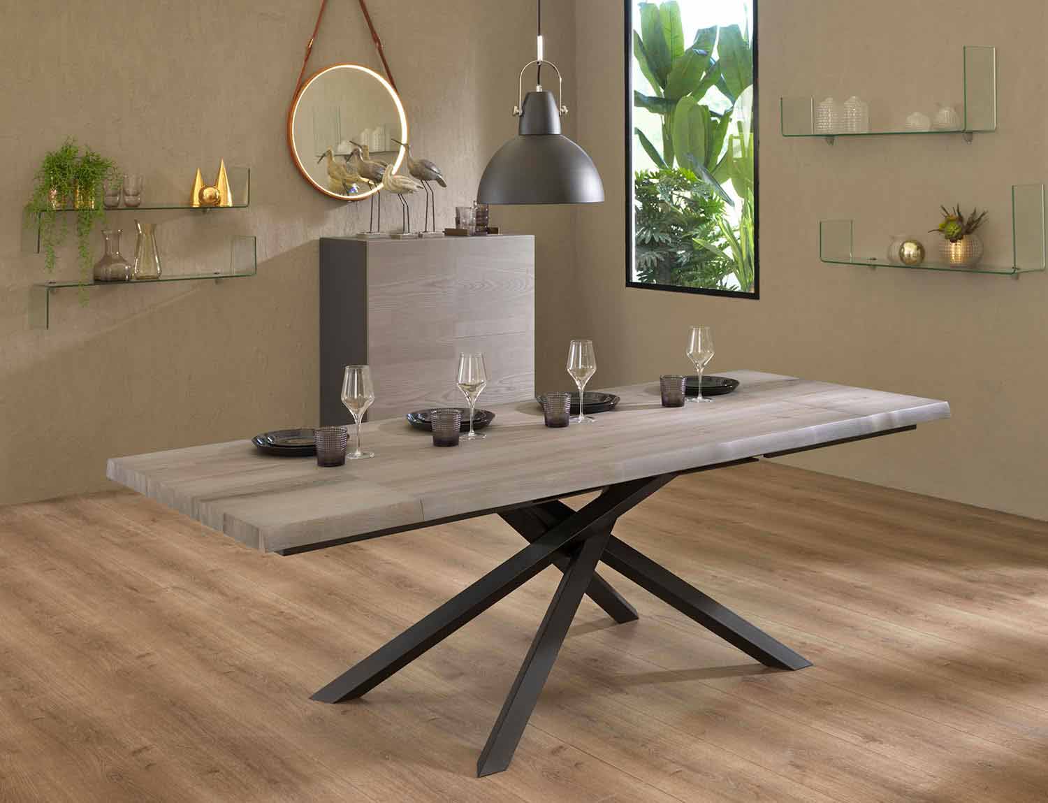 Xino se fabrica con una base de metal pintado disponible en dos colores y una tapa de madera también disponible en dos acabados diferentes y también se caracteriza por la posibilidad de extenderse hasta 240 o 300 cm gracias a las extensiones externas también en chapa de fresno gris, así obteniendo más espacio y permitiéndote acoger a amigos y familiares sin tener que renunciar a la comodidad.