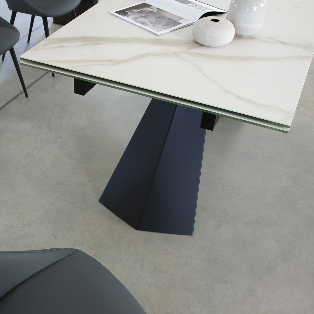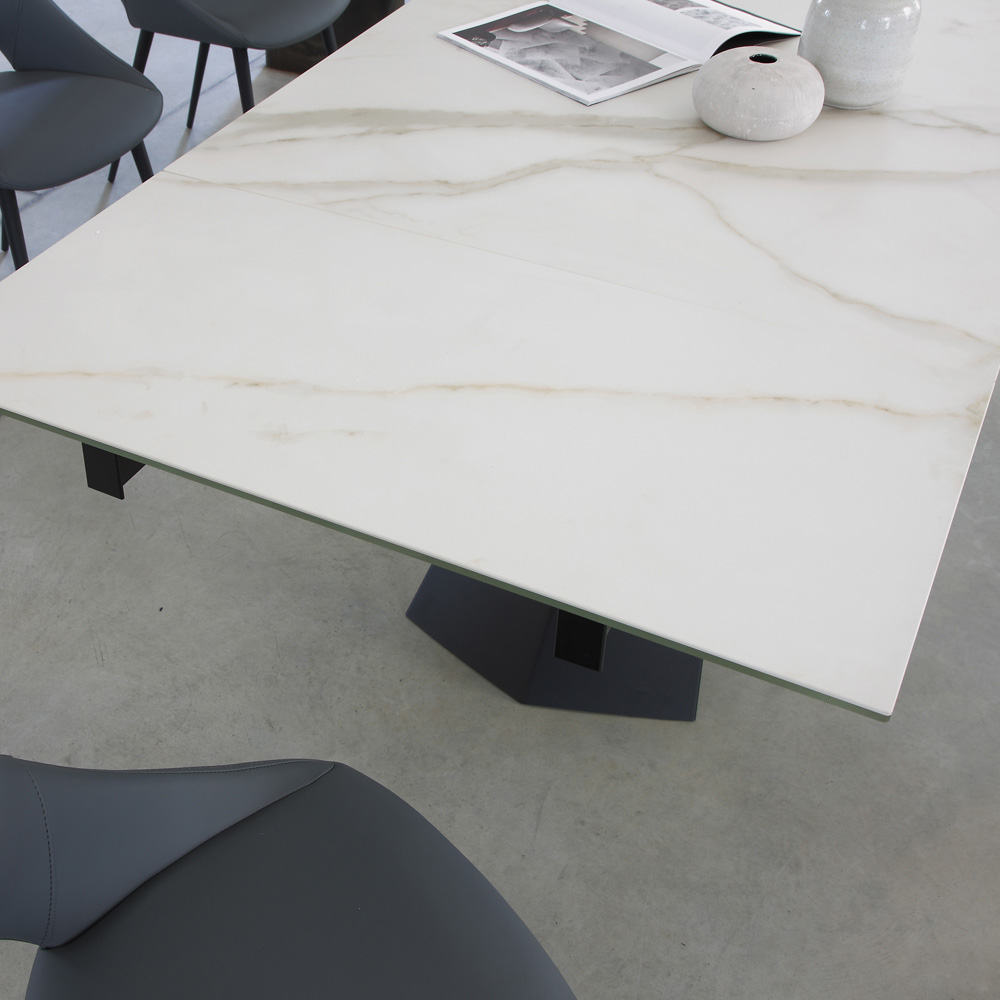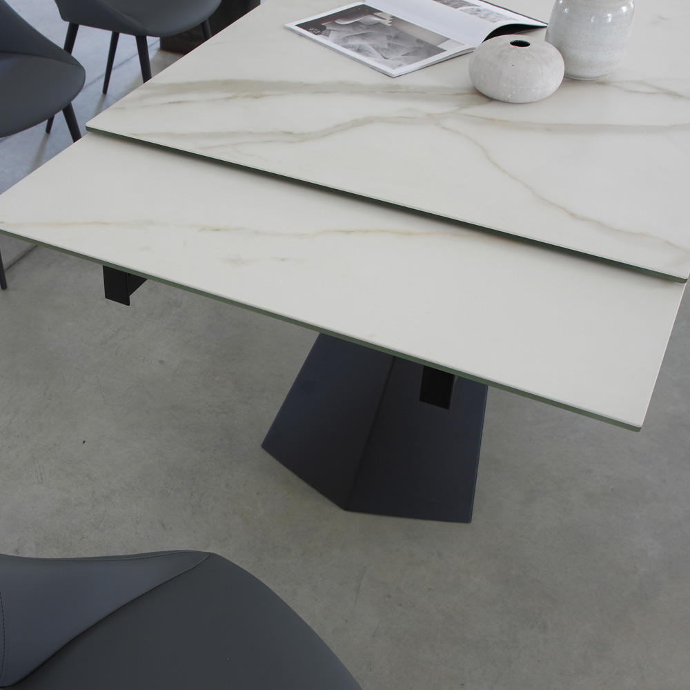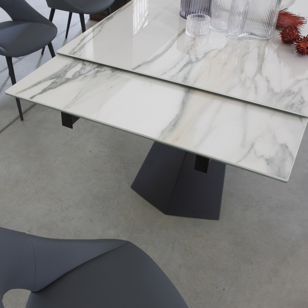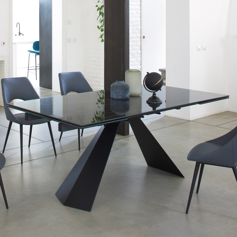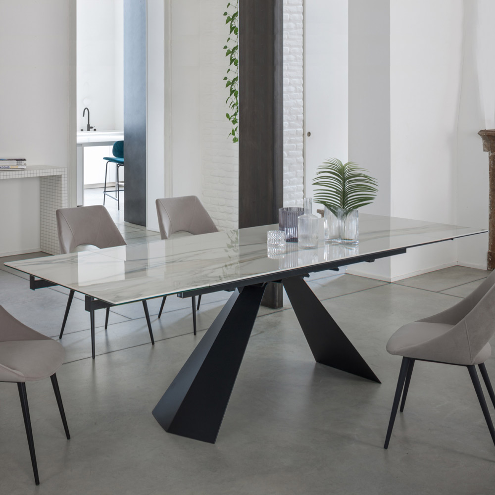 Mesa de comedor con tapa extensible hasta 270 cm en cristal cerámico.