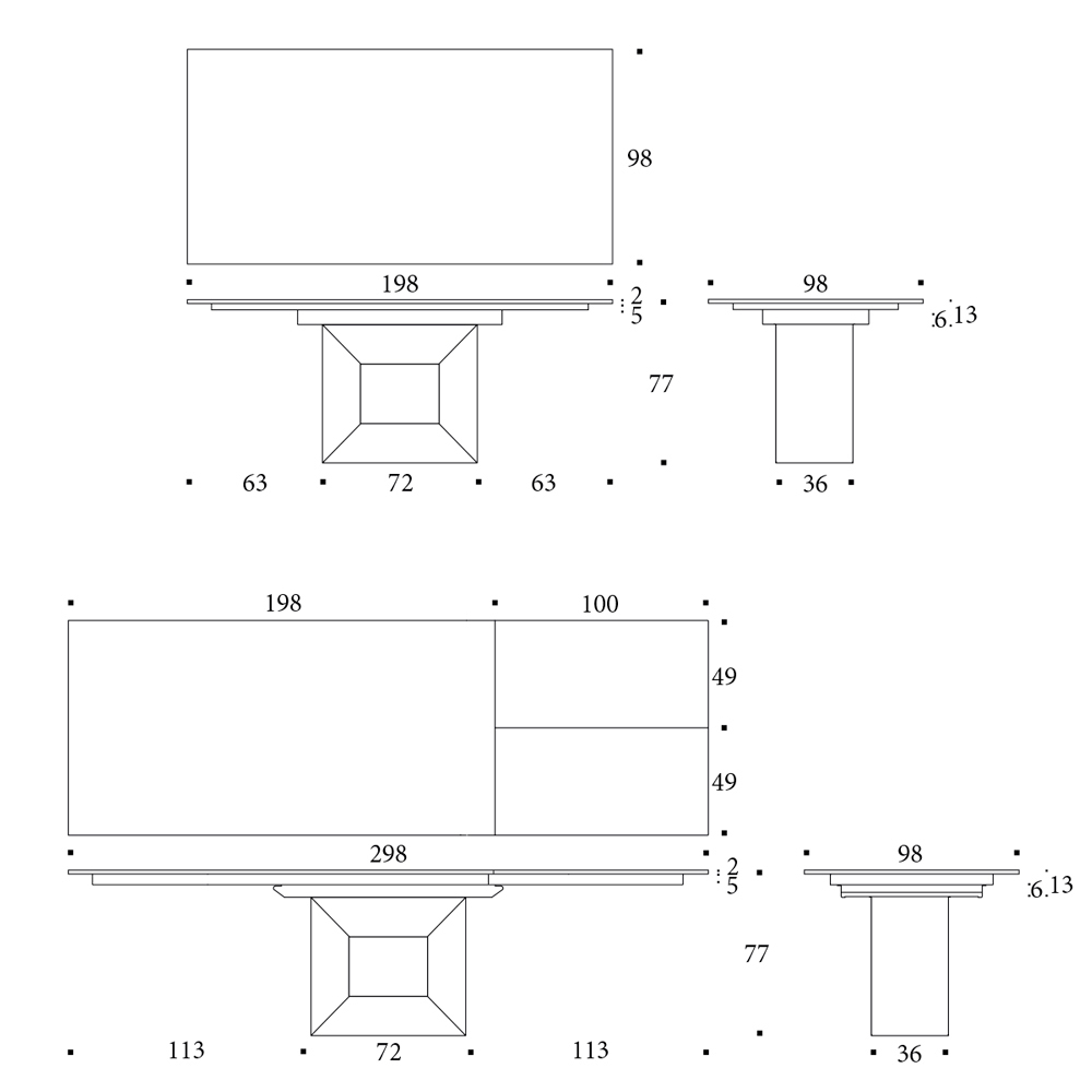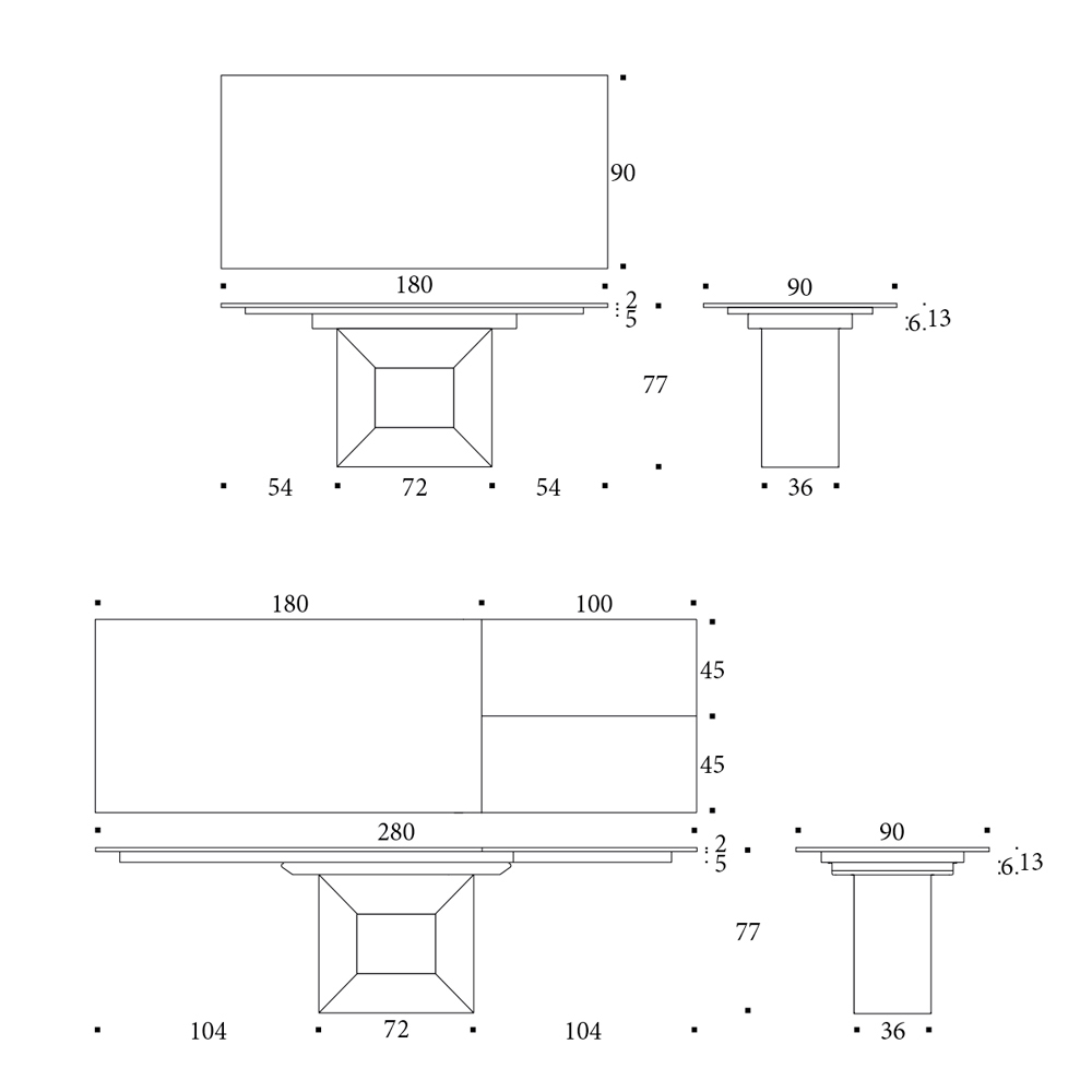 La parte superior es extensible gracias a su estructura metálica, mecanismo telescópico y apertura sincronizada. La extensión interna se extiende como un libro, con veta continua.