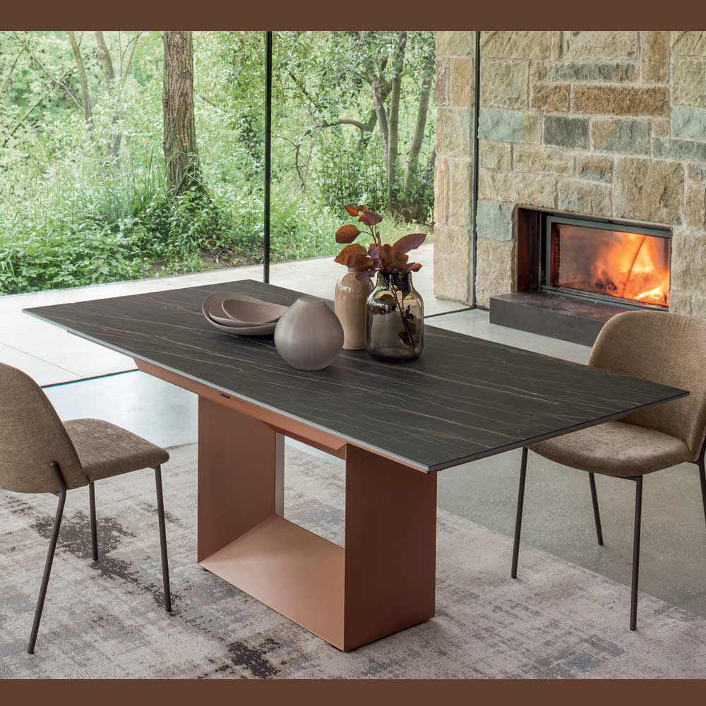 Mesa extensible de interior de cerámica y metal. Fabricada en Italia.