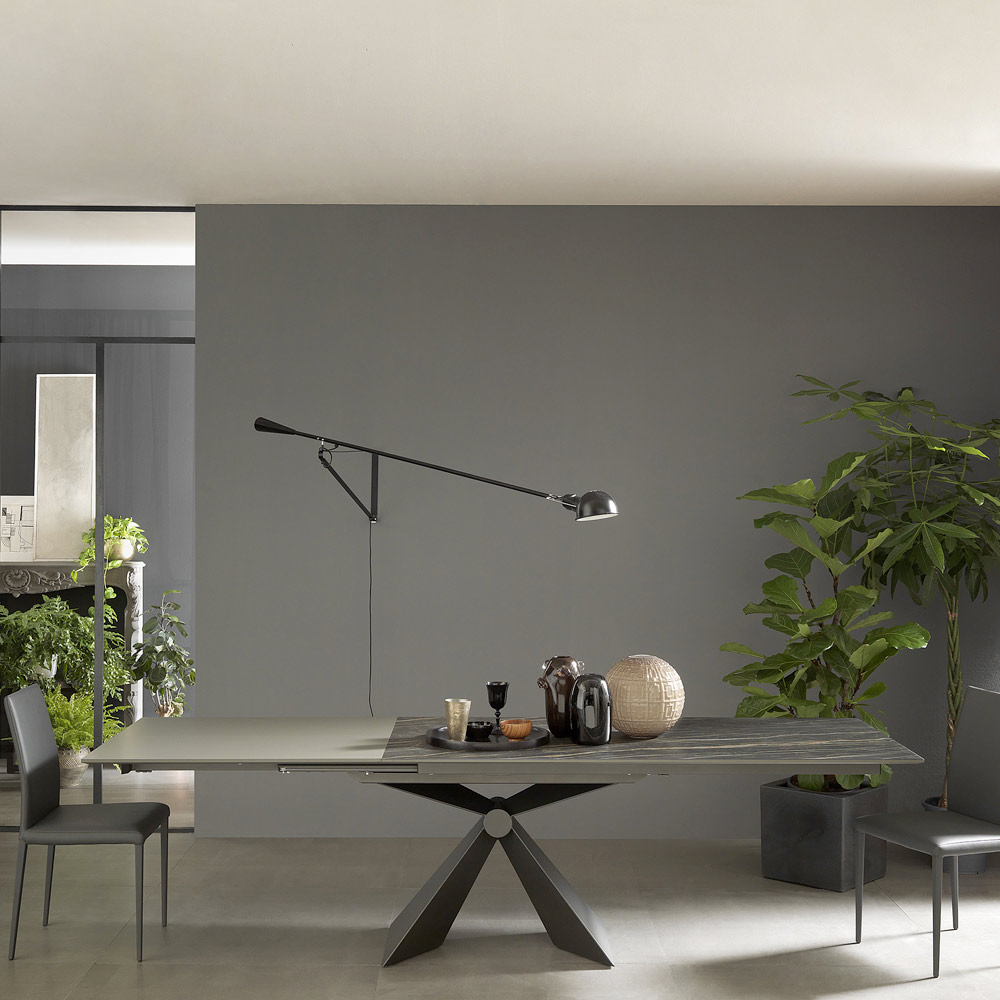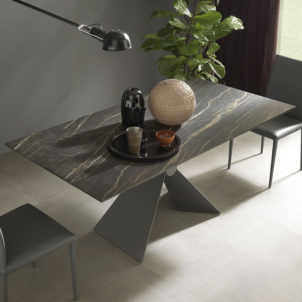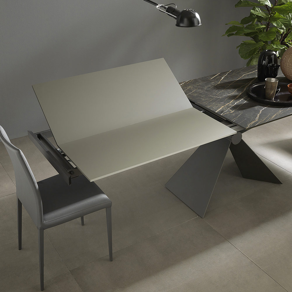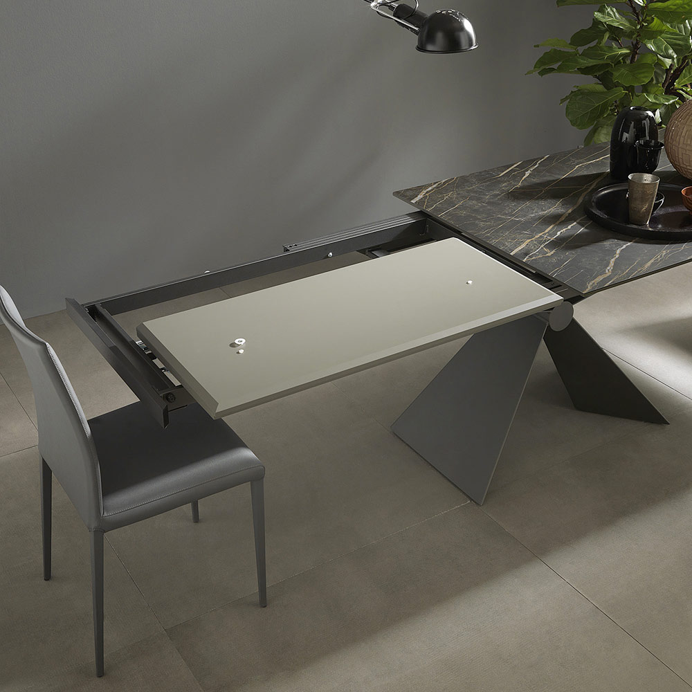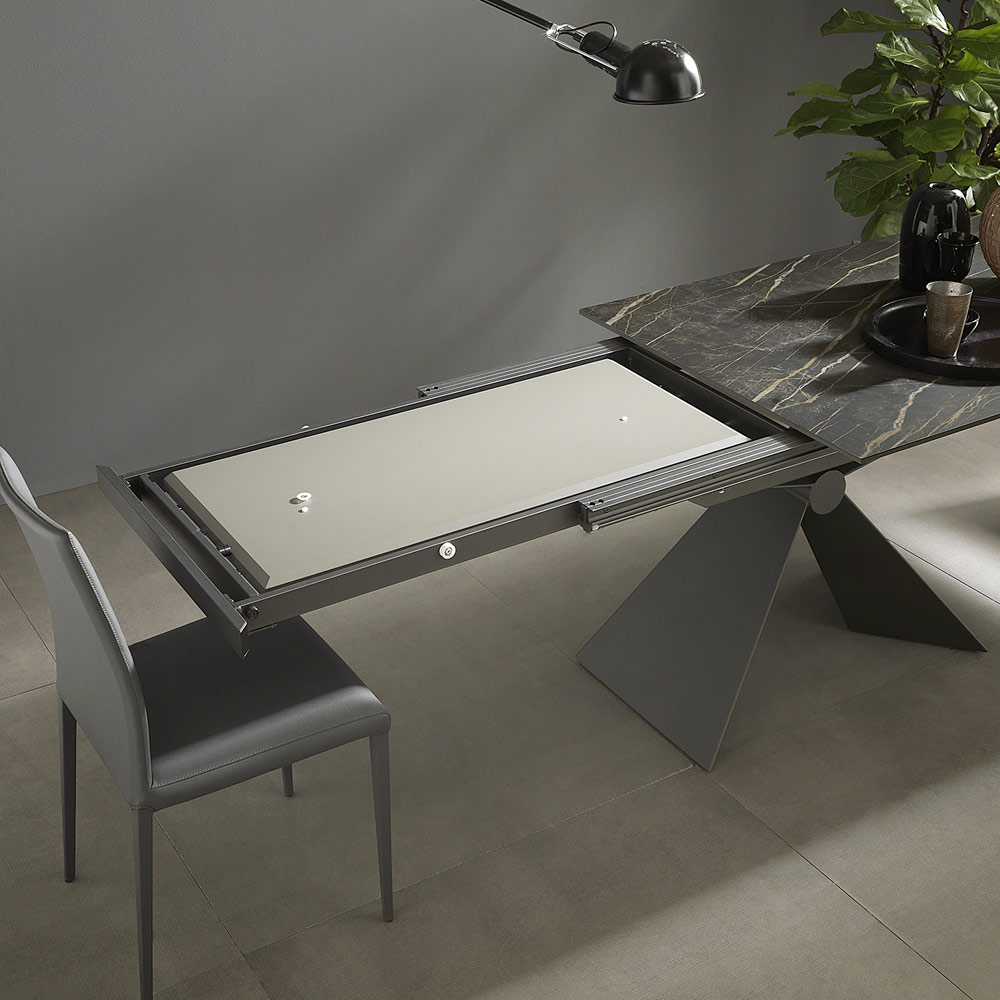 Moderna mesa de comedor extensible en cerámica y metal Made in Italy.
