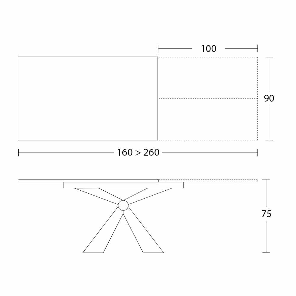 • Ancho 160/260 x Fondo 90 x Alto 75 cm;