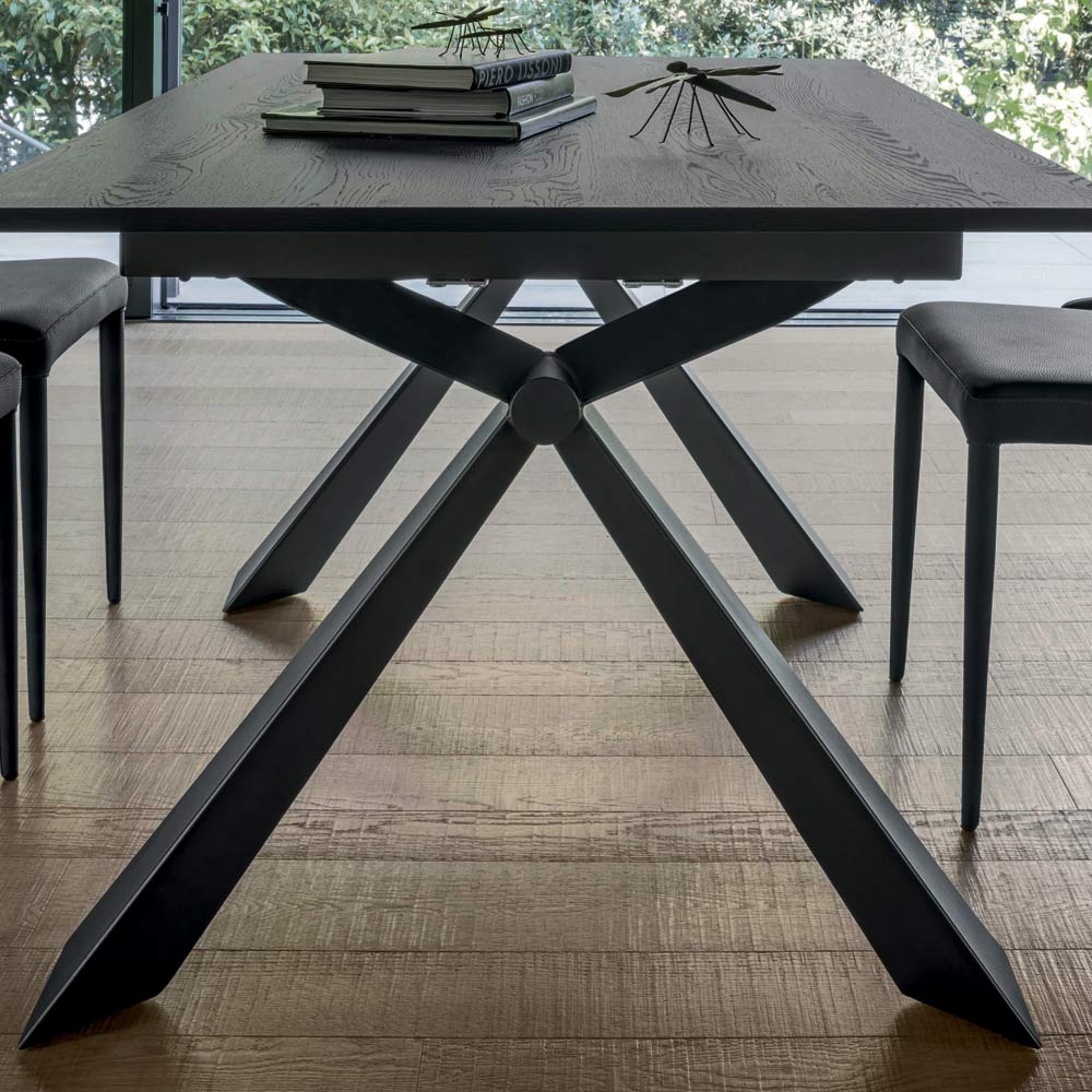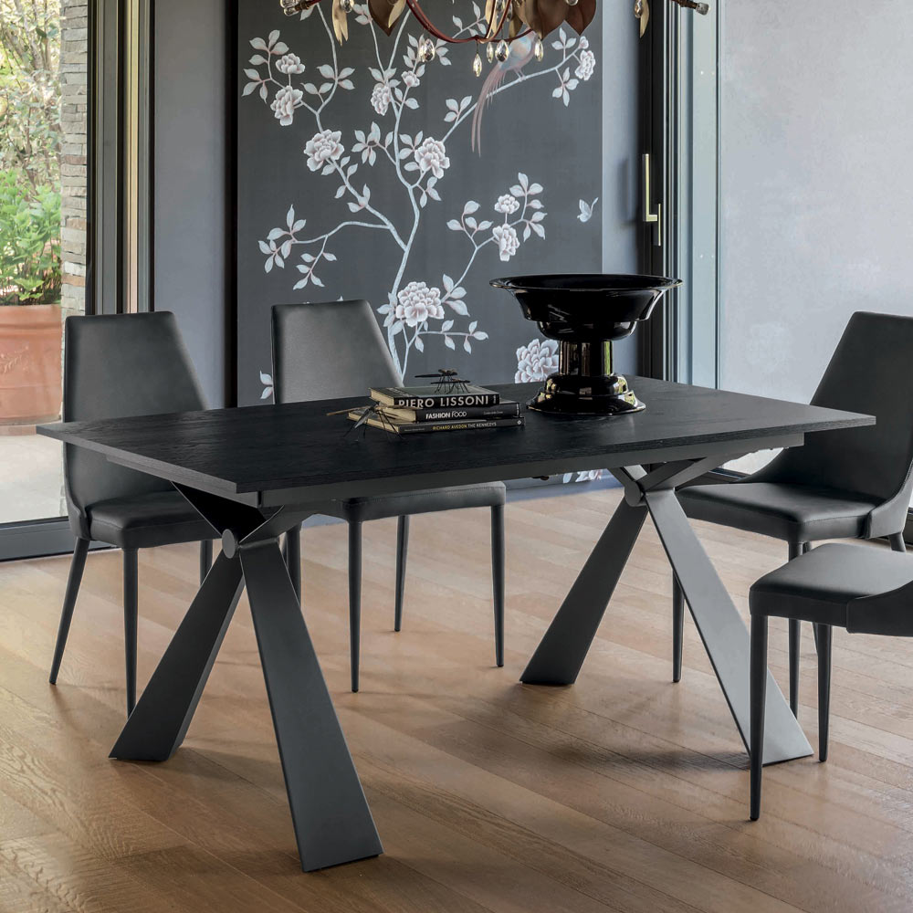Mesa de comedor con tapa extensible en melamina y base de metal Made in Italy.