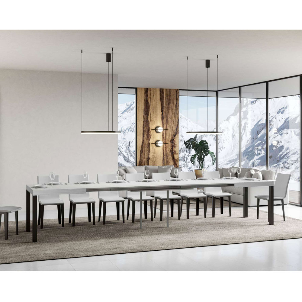La verdadera magia de esta mesa, sin embargo, reside en su extensible versatilidad. Diseñada para adaptarse dinámicamente a las necesidades de la vida moderna, puede ampliarse fácilmente para acomodar a más comensales, lo que la hace ideal para recibir invitados o acomodar a familias en crecimiento. El acabado de calidad y la sólida construcción prometen durabilidad y resistencia, haciendo de esta mesa una inversión a largo plazo para el hogar.