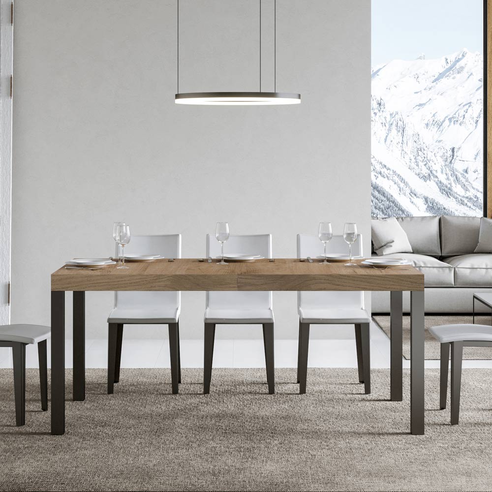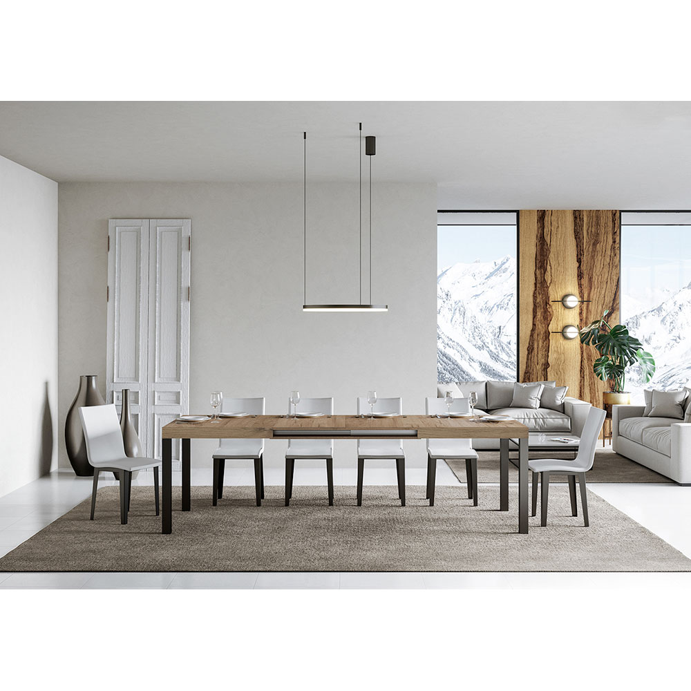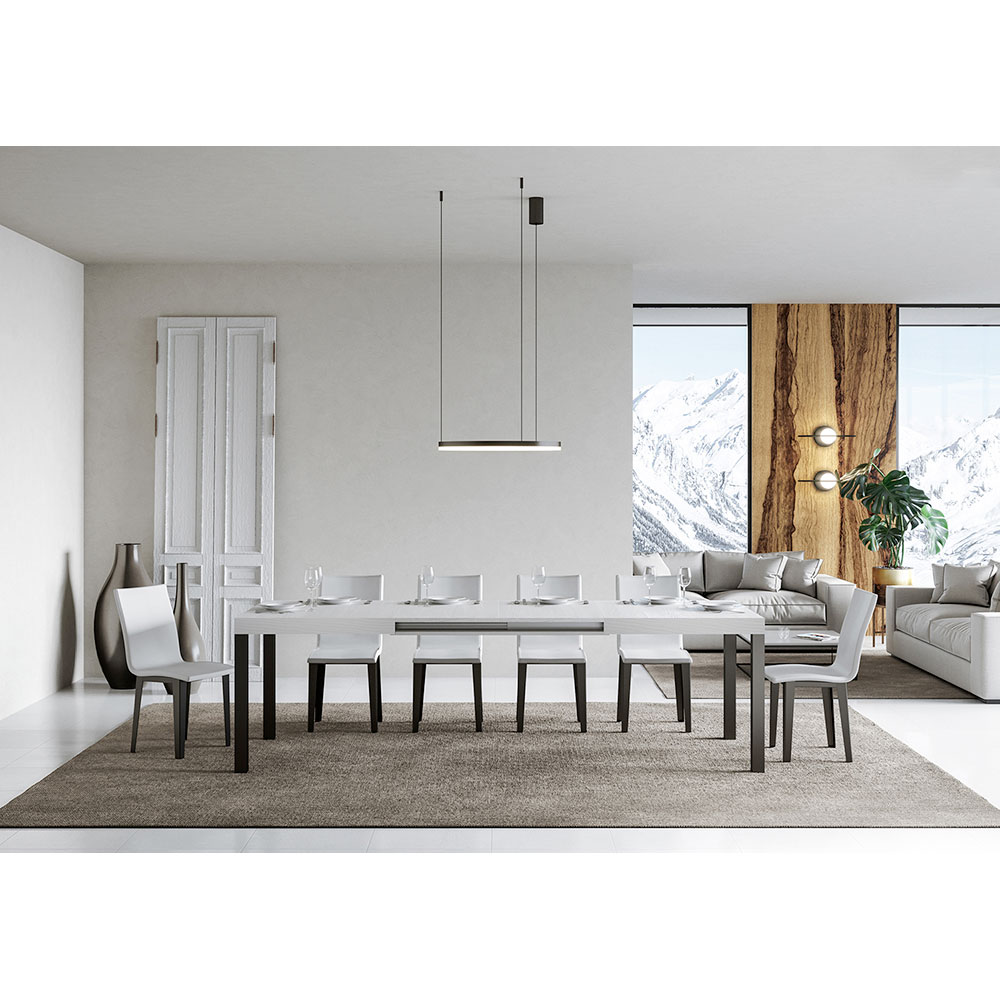 Esta mesa extensible es una síntesis perfecta de elegancia discreta y funcionalidad moderna. El tablero invita a la gente a reunirse alrededor para compartir comidas y momentos preciosos, irradiando una sensación de bienvenida y calidez. Las robustas patas garantizan la estabilidad y añaden un toque de contraste contemporáneo.