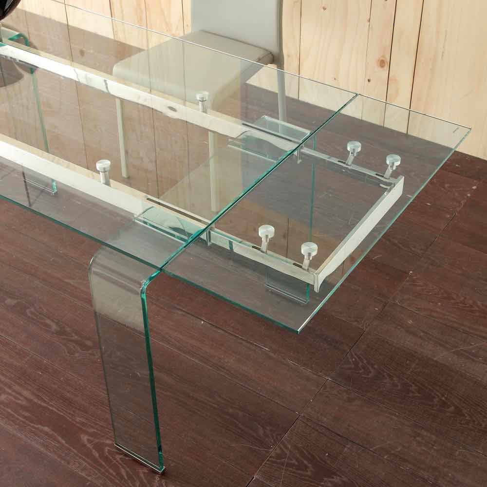 Mesa de comedor extensible Lord moderna, con tapa de cristal templado