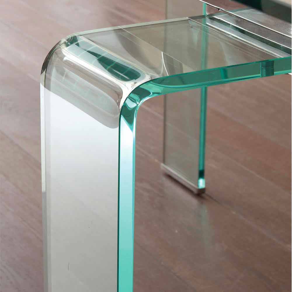 El tablero de la mesa Lord está fabricado en vidrio transparente templado (grosor del tablero: 9 mm, patas de la mesa 14 mm. Su estructura es de metal cromado.