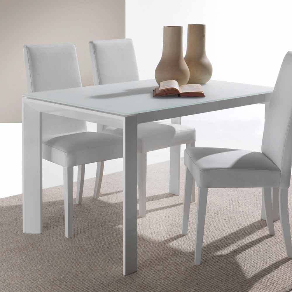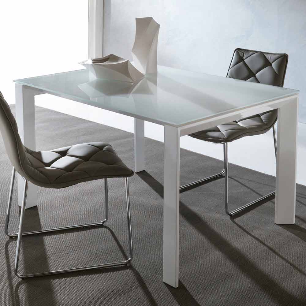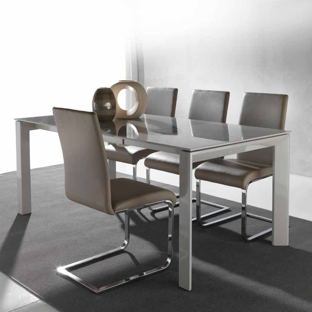 Mesa extensible moderna con tapa de cristal templado (10 mm), disponible en 5 acabados diferentes.