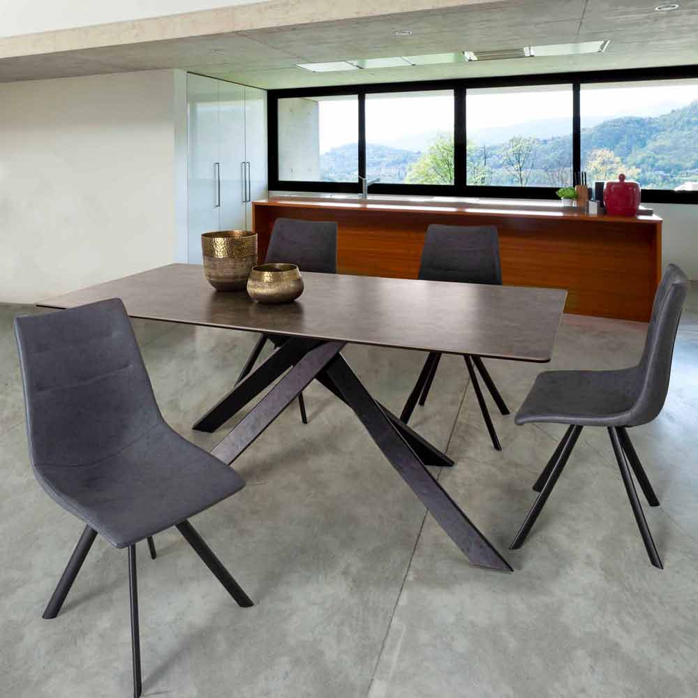 Mesa de comedor moderna con tapa de cristal y cerámica Homemotion - Ringo