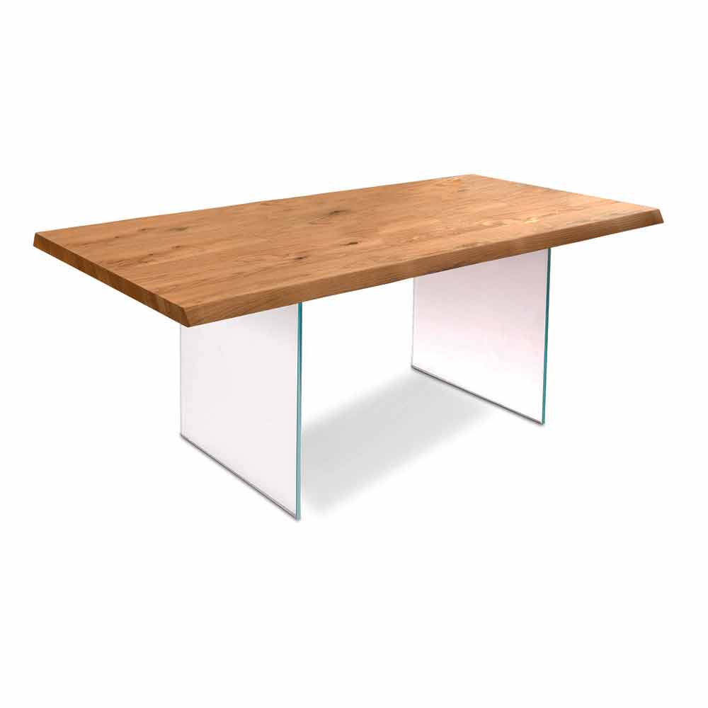 Mesa de comedor moderna en chapa de roble, patas de cristal Nico