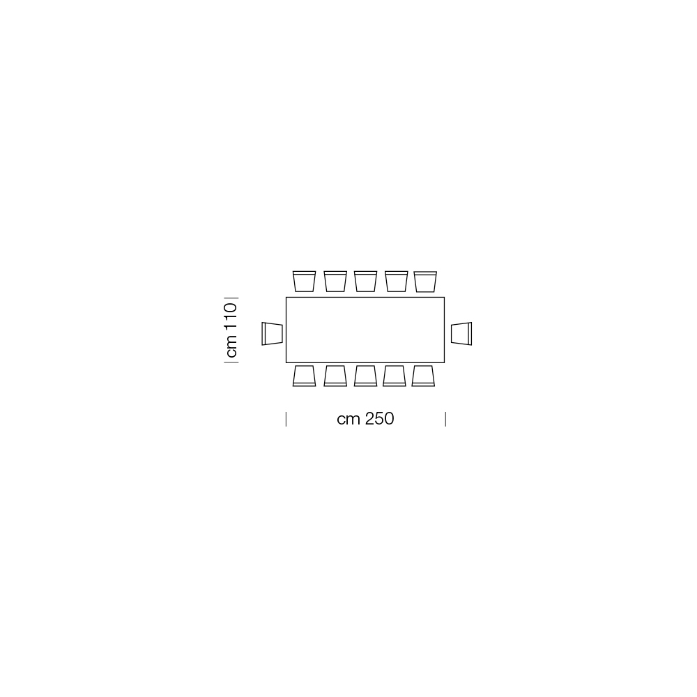 base de acero lacado en blanco. Medidas- 250 cm de largo x 110 cm de profundidad x 75 cm de alto. 12 plazas.