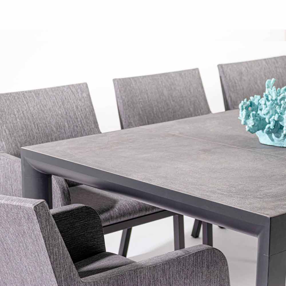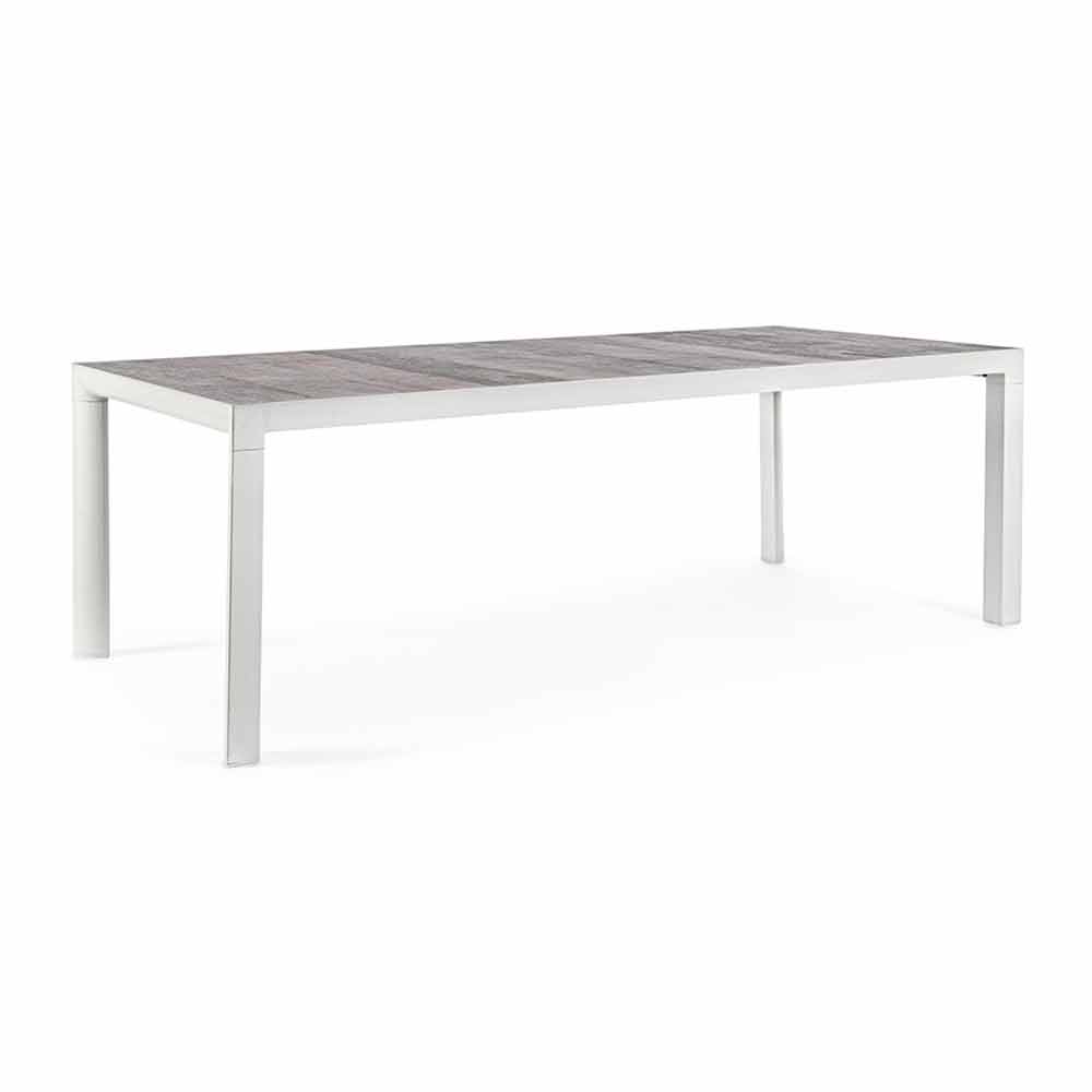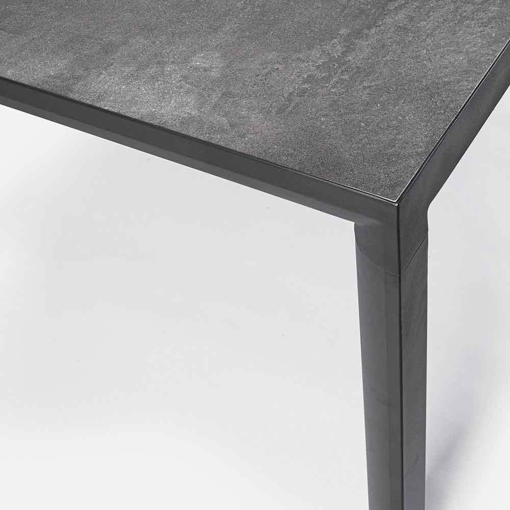 Estructura de aluminio , con recubrimiento de polvo (poliéster). Tapa de cerámica (10 mm de espesor). Piernas para montar .