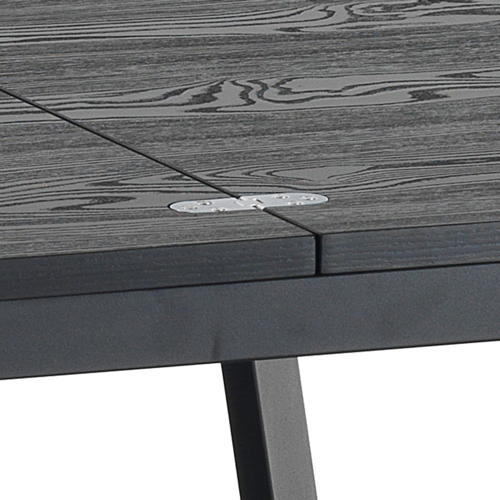 - Tapa de melamina acabado madera negra, patas de acero pintado negro mate.