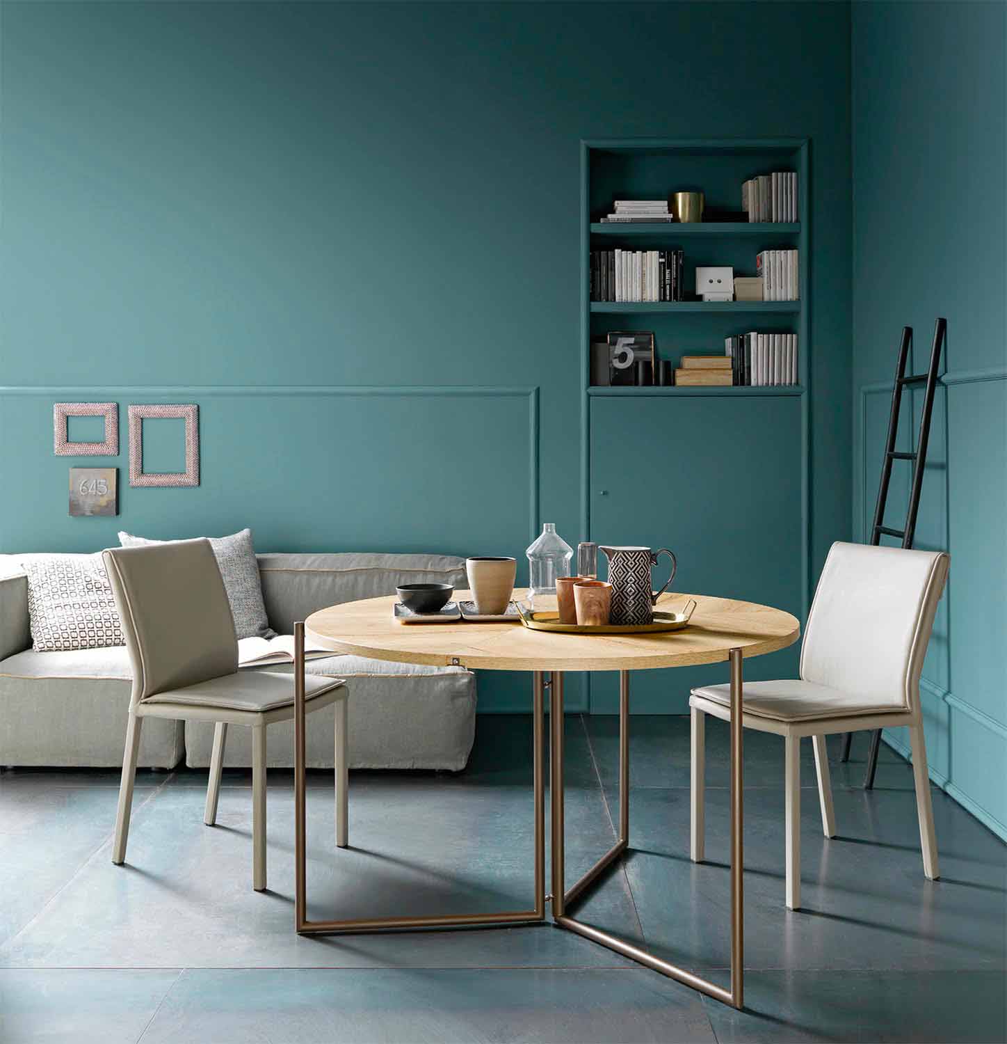 Mesa de comedor plegable de diseño con tapa en madera de melamina y base de metal Made in Italy.
