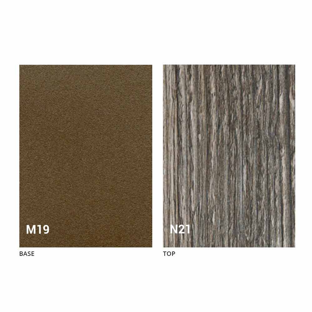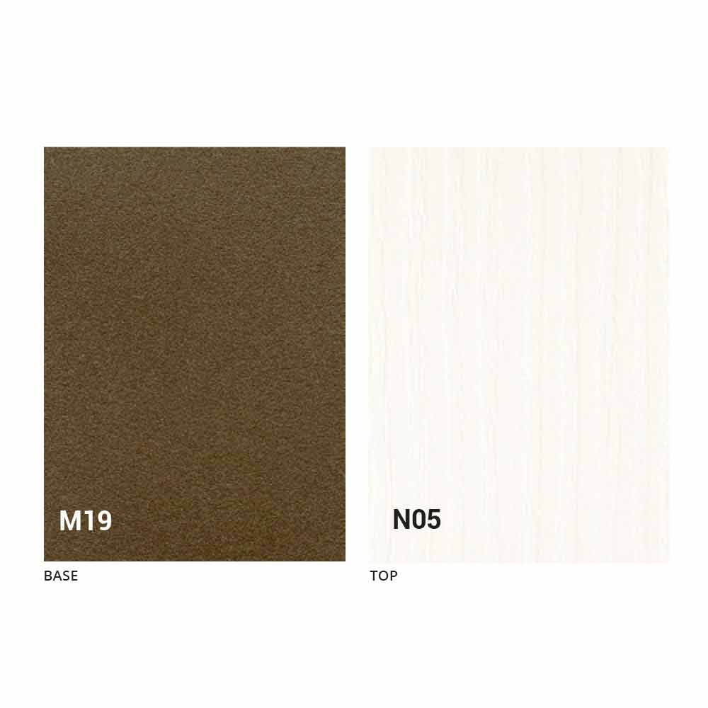 base de metal pintado en bronce repujado. Disponible en diferentes acabados:- tapa de madera de melamina blanca matrix,