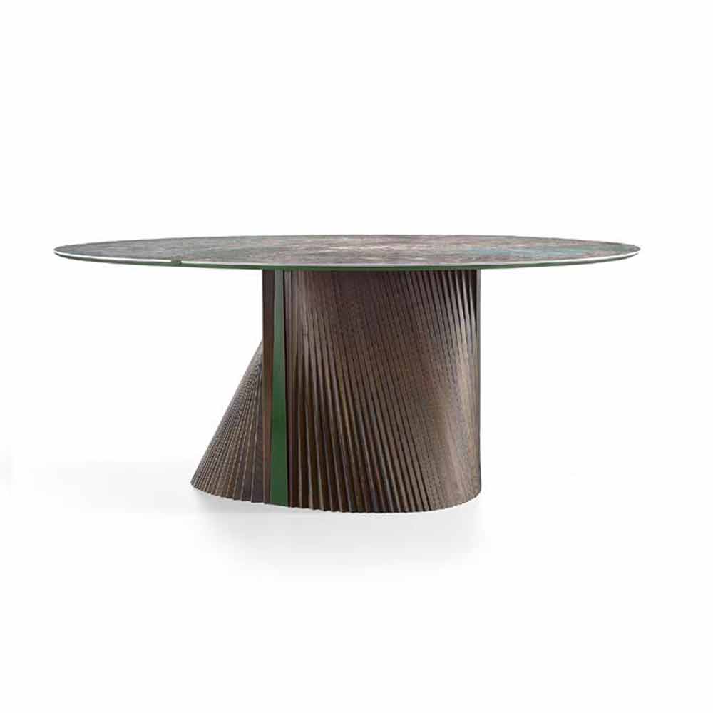 Mesa de comedor redonda con tapa de gres pulido, artículo Made in Italy de alta calidad.