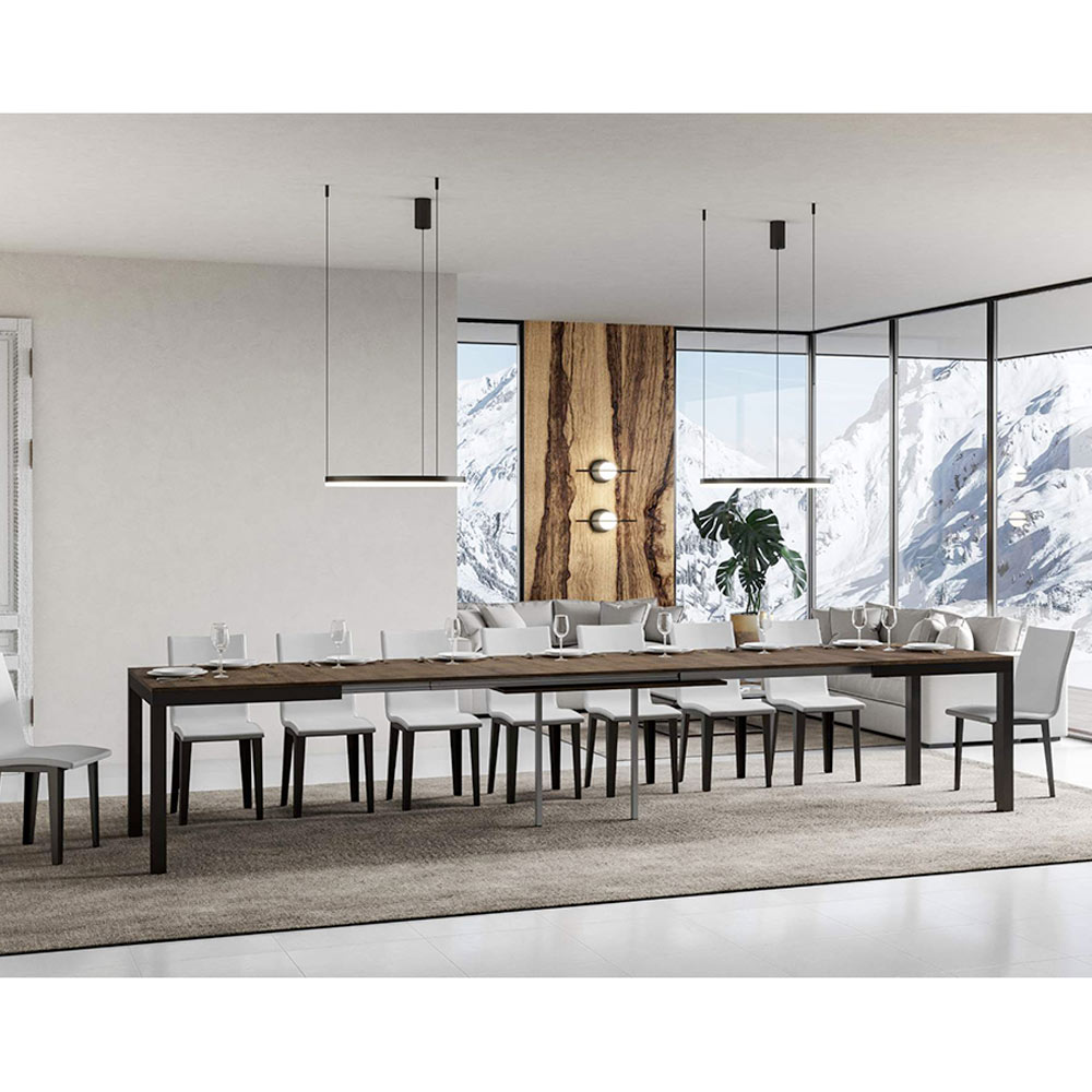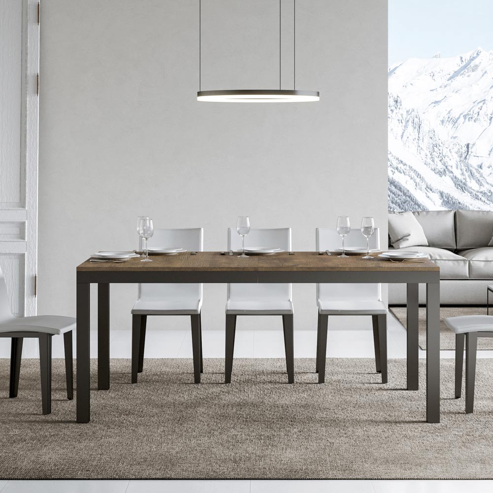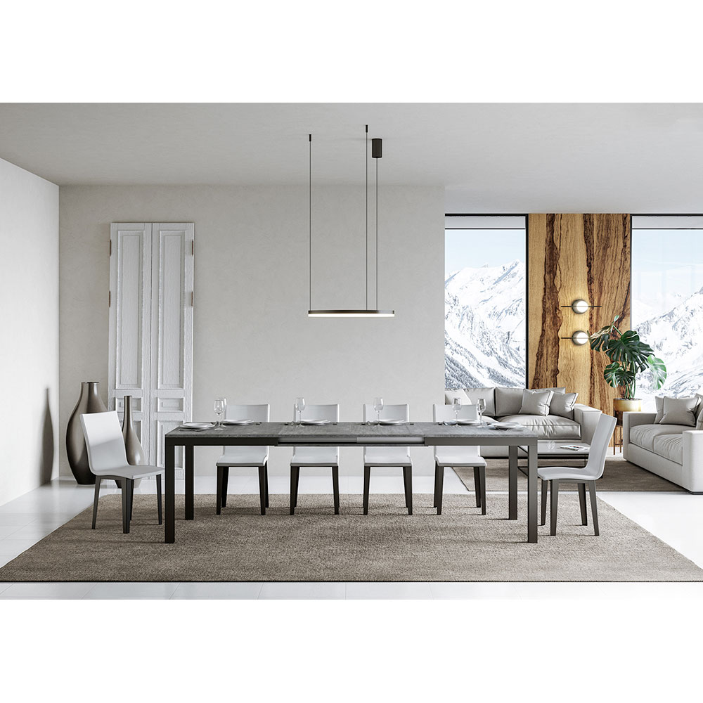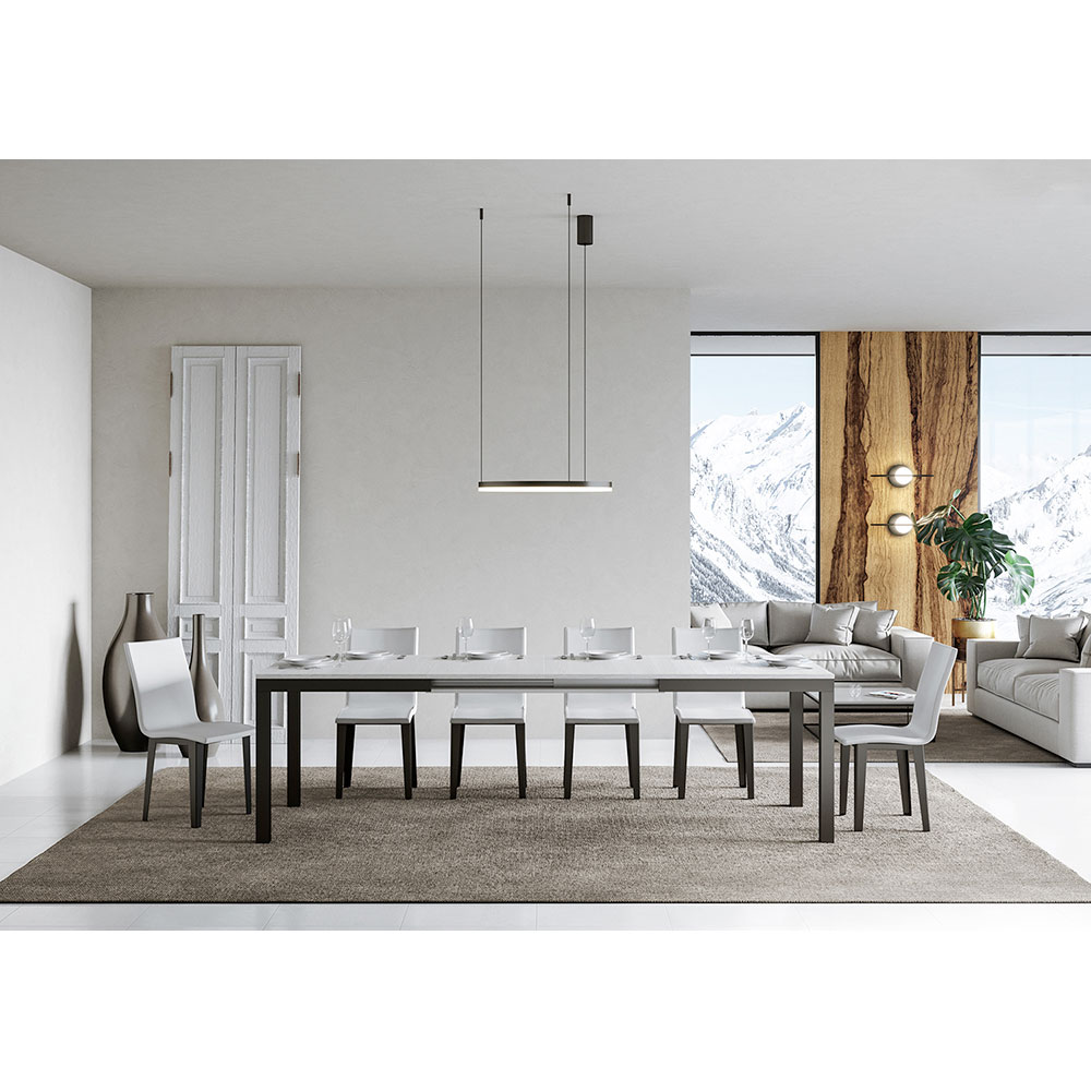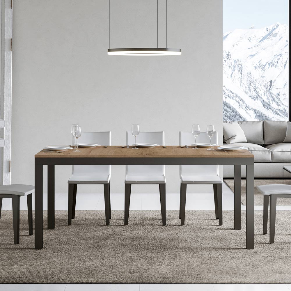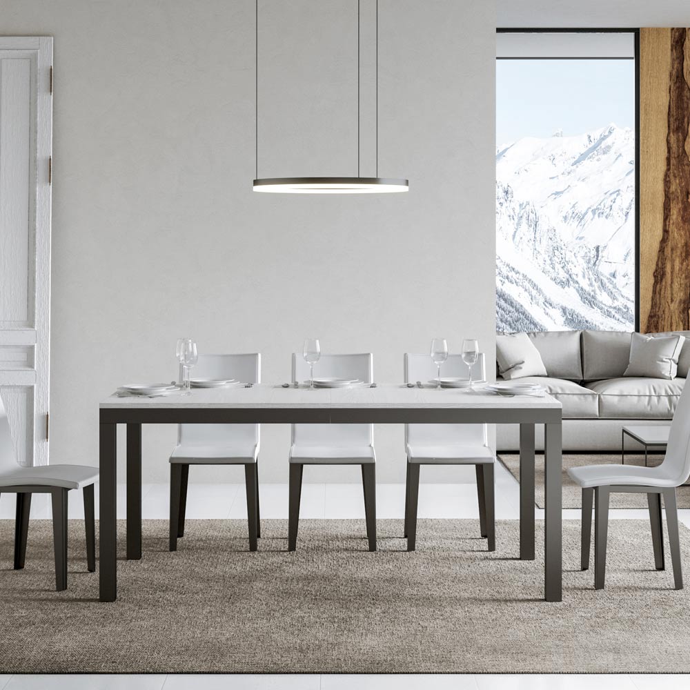 Esta mesa extensible es una síntesis perfecta de elegancia discreta y funcionalidad moderna. El tablero invita a la gente a reunirse alrededor para compartir comidas y momentos preciosos, irradiando una sensación de bienvenida y calidez. Las robustas patas garantizan la estabilidad y añaden un toque de contraste contemporáneo.