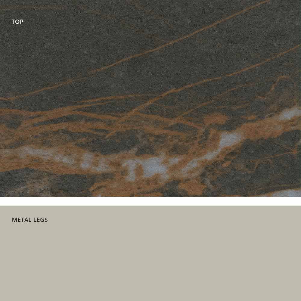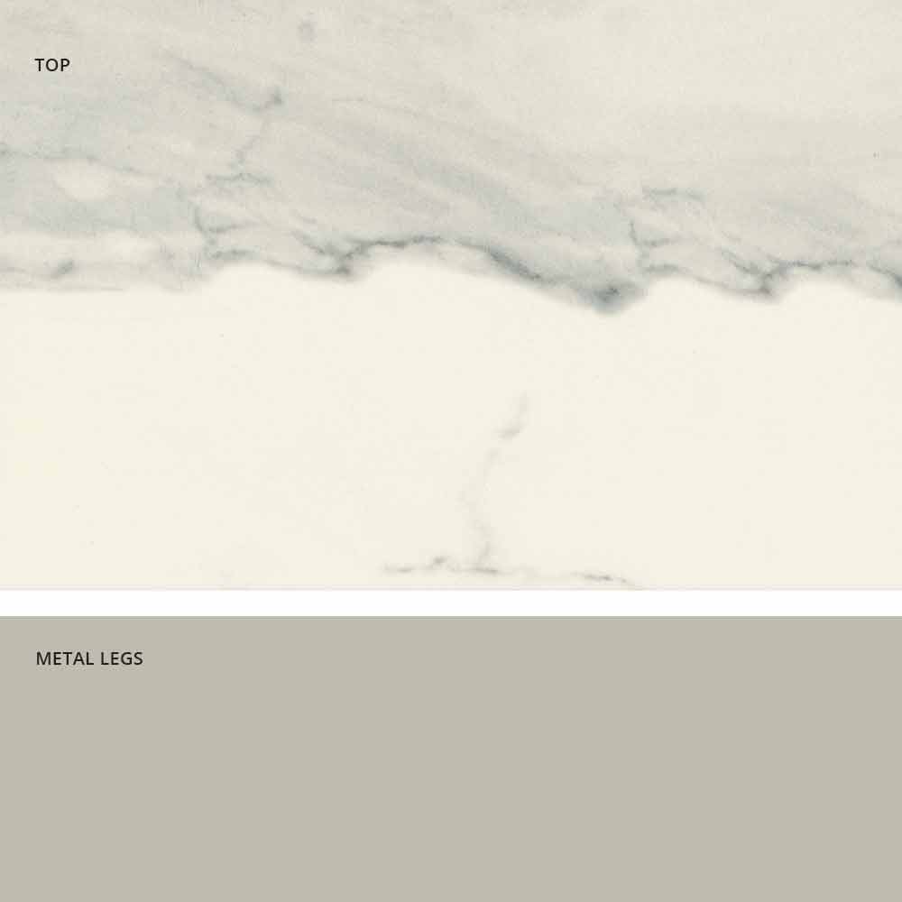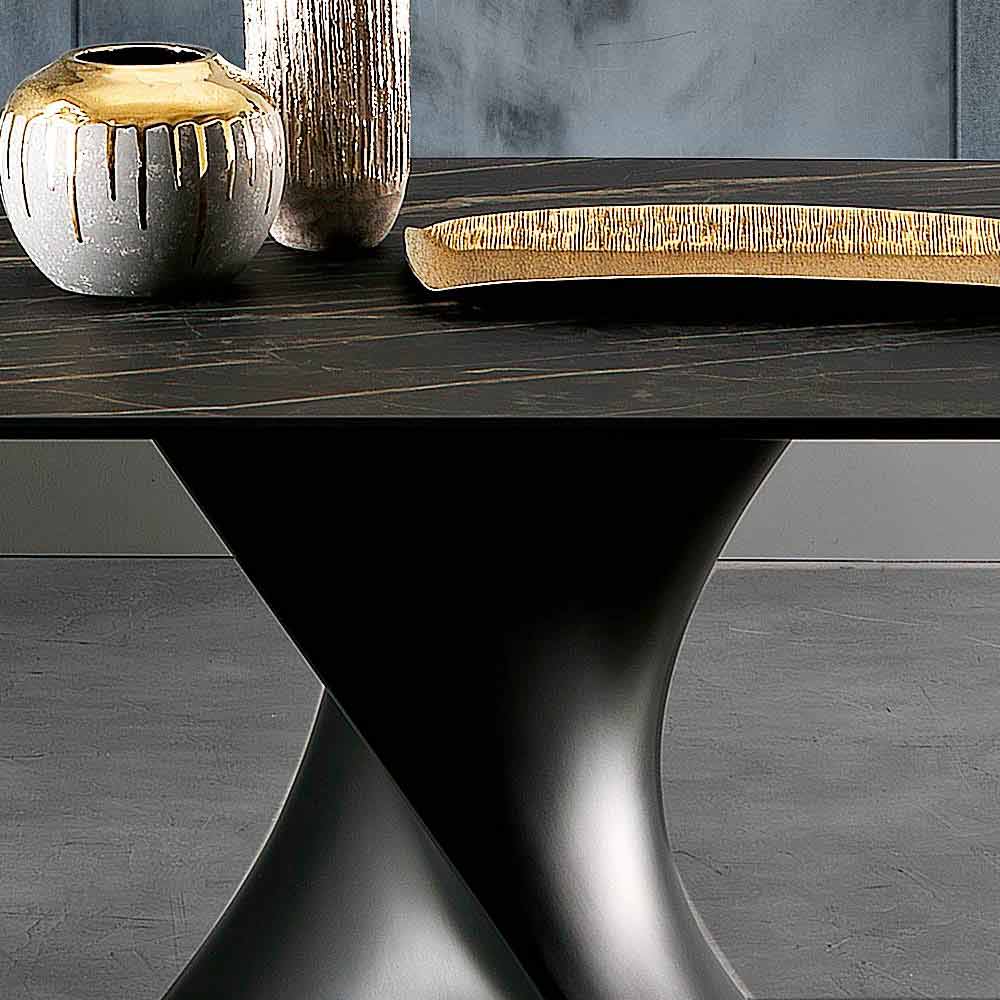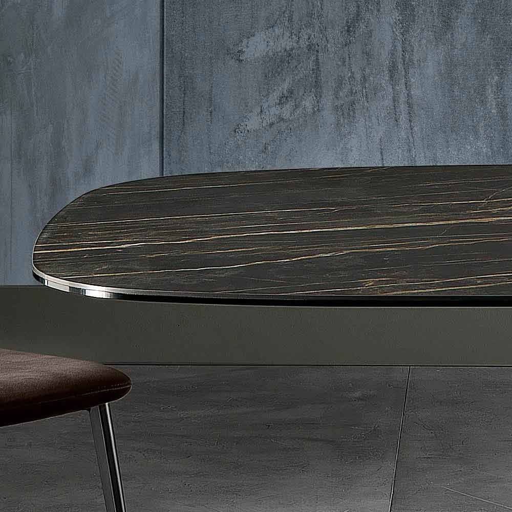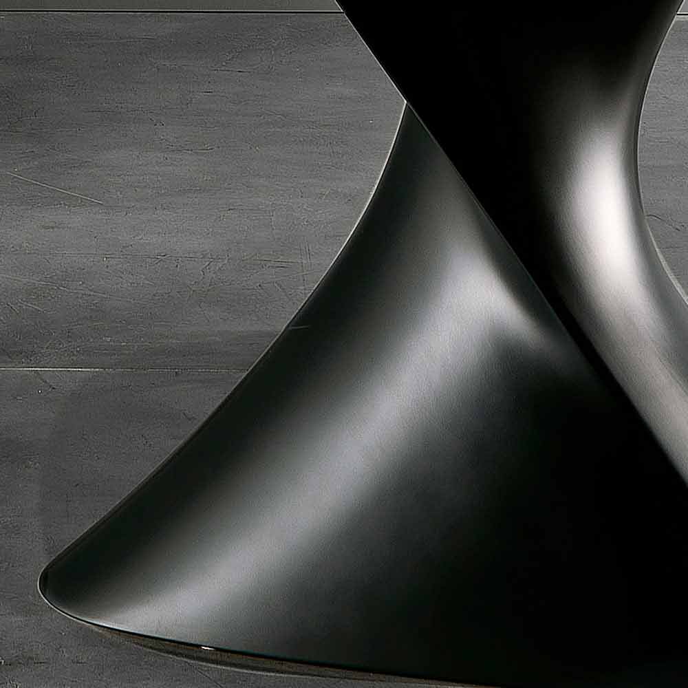 Clark es una mesa fija realizada en Italia con una superficie ovalada en vitrocerámica y una base de poliuretano.