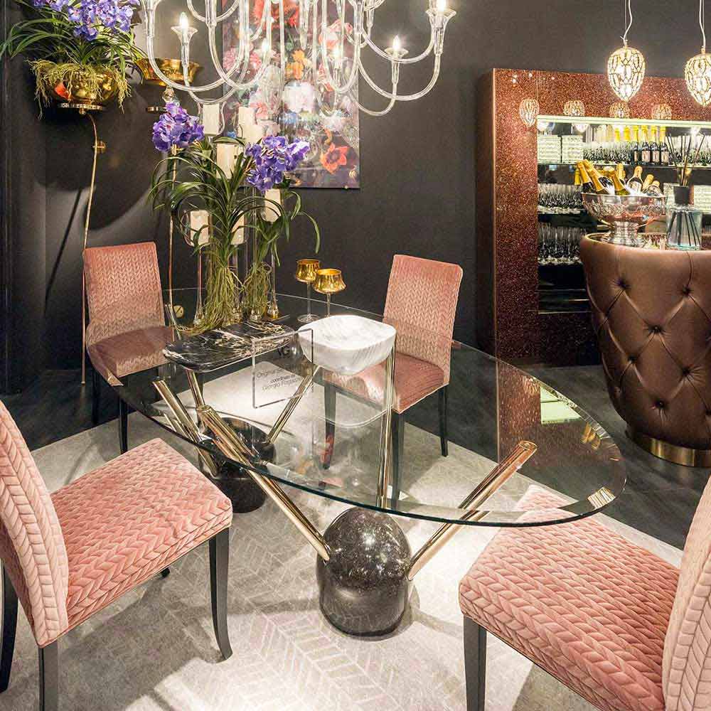 mesa de diseño oval con tapa de cristal 100% Made in Italy Zoe