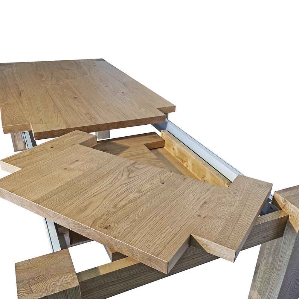 NB : La medida L 140 x P 90 tiene una sola extensión. Bajo pedido también está disponible el modelo fijo de la misma mesa y también una variación del modelo de las patas.