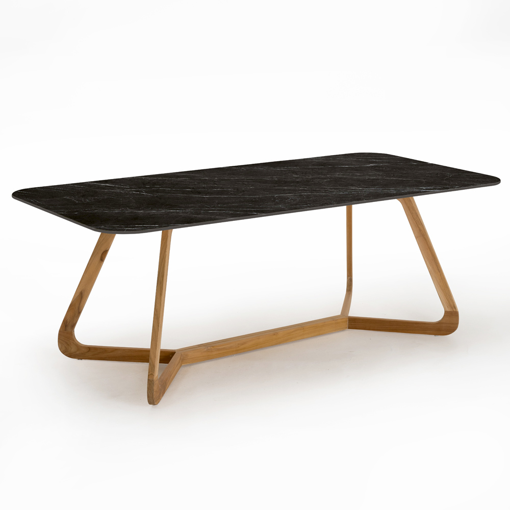 Mesa de jardín rectangular de madera y cerámica, Made in Italy