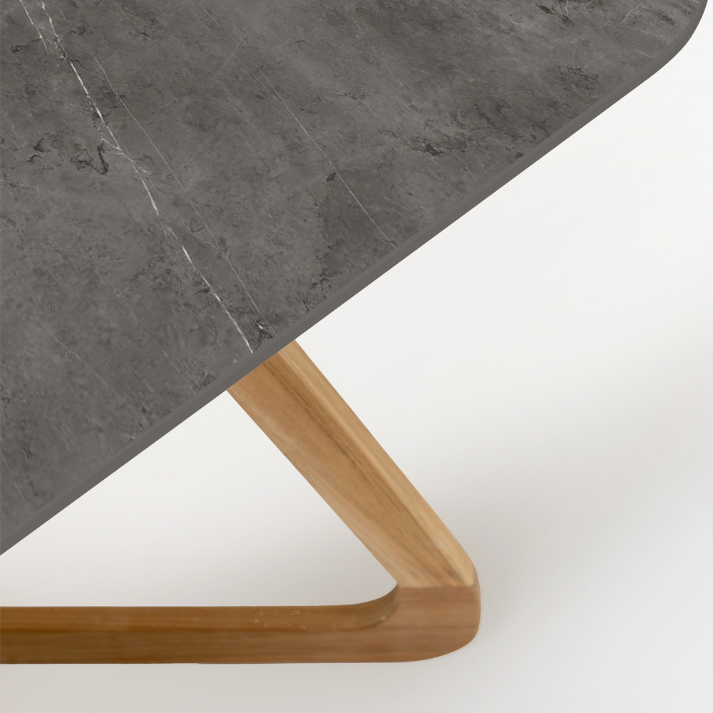 Mesa de exterior con base de madera y tapa de cerámica Pietra Grey - Infinity